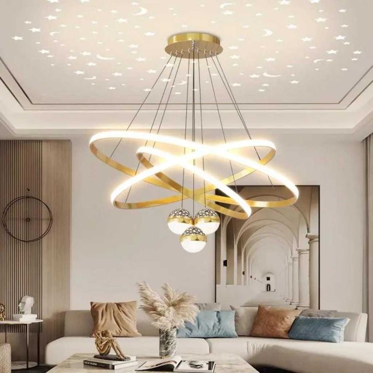 Lampu Gantung Minimalis Ring 3 Warna LED Modern Dekorasi Hias Ruang Tamu Kristal Kamar Mewah Klasik Mini Bar Cafe Indoor