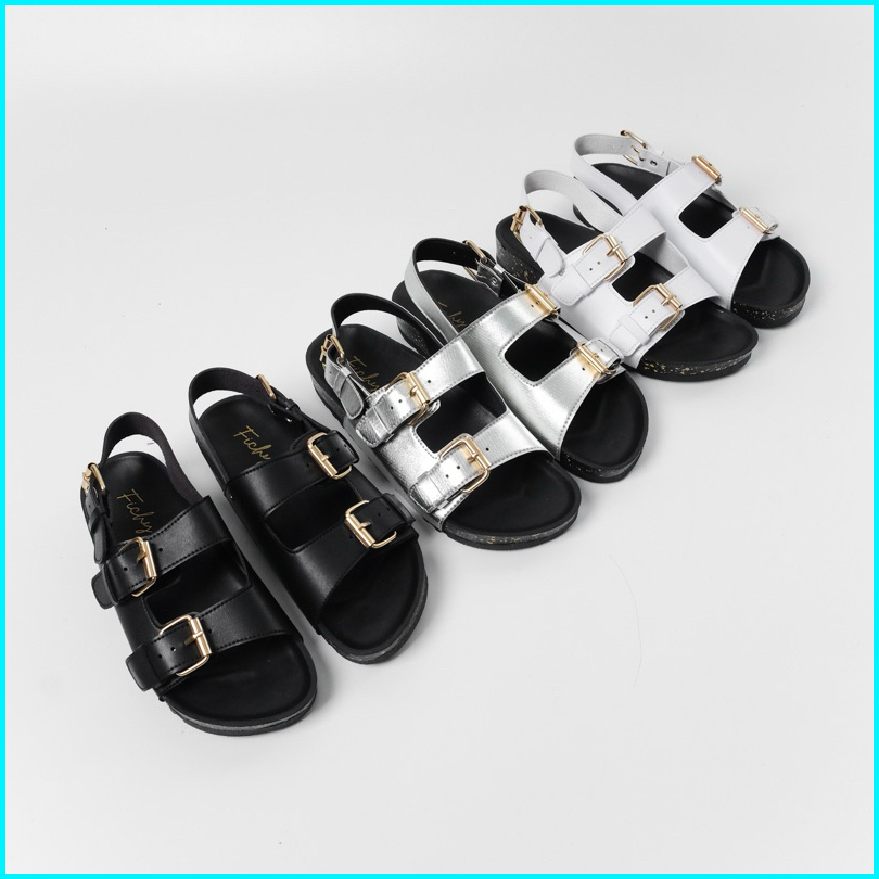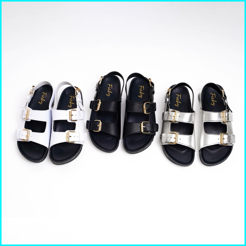 Fichy - Series Sandal Flat Wanita Footbed Birken Sandal Sandal Wanita Sandal Flat