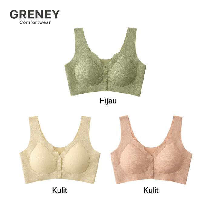 Greney-L.W.L-(3Pcs)Bra Rompi Renda Kancing Depan Pakaian Dalam Push Up Bh Bra Wanita Sport Tanpa Kawat Wireless Busa-896