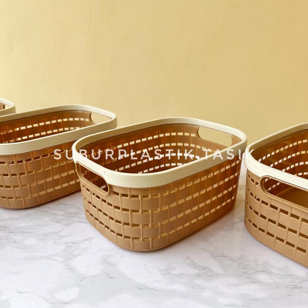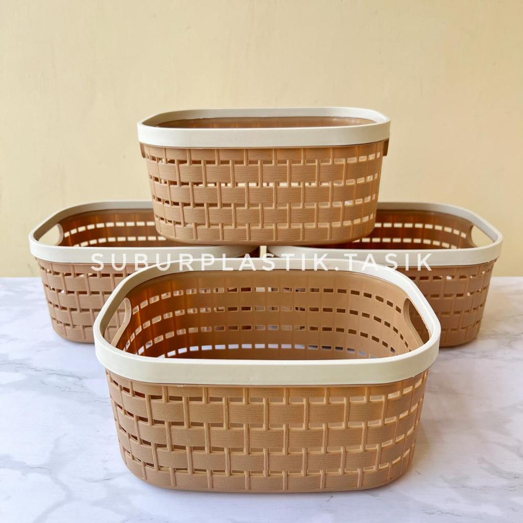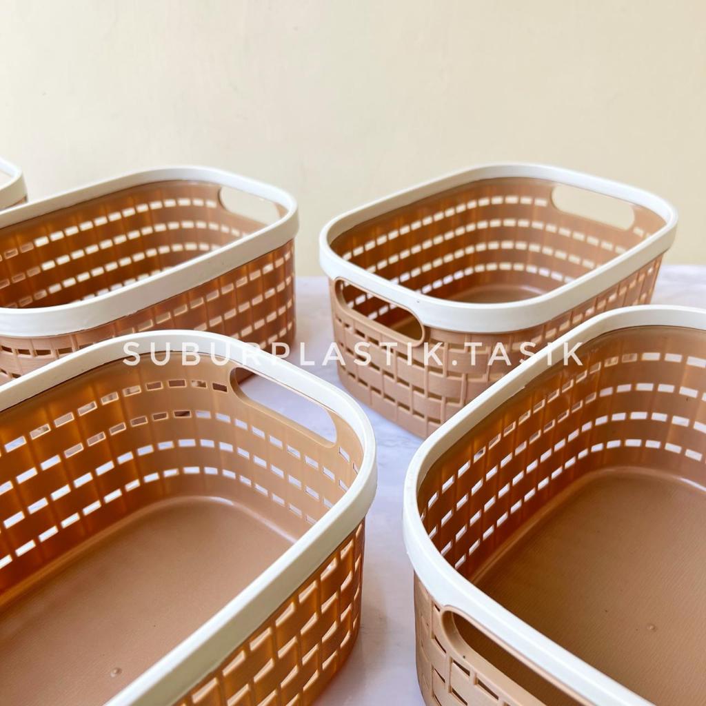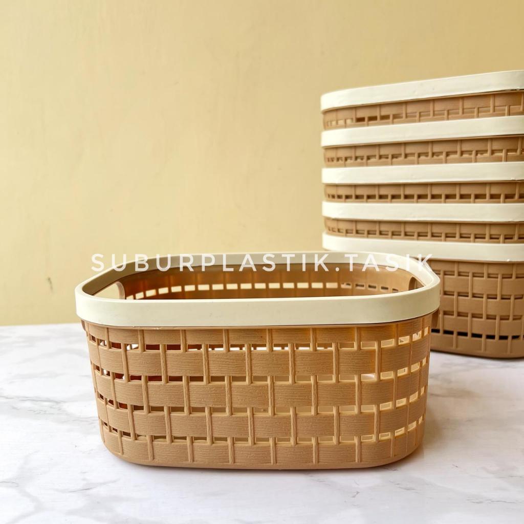 [6 pcs] Keranjang Blink Coklat Motif Kayu Anyam Plastik Tempat Penyimpanan Serbaguna Organizer