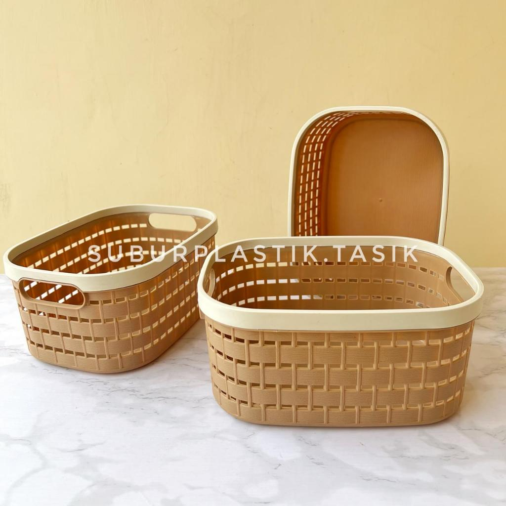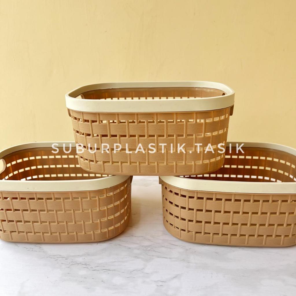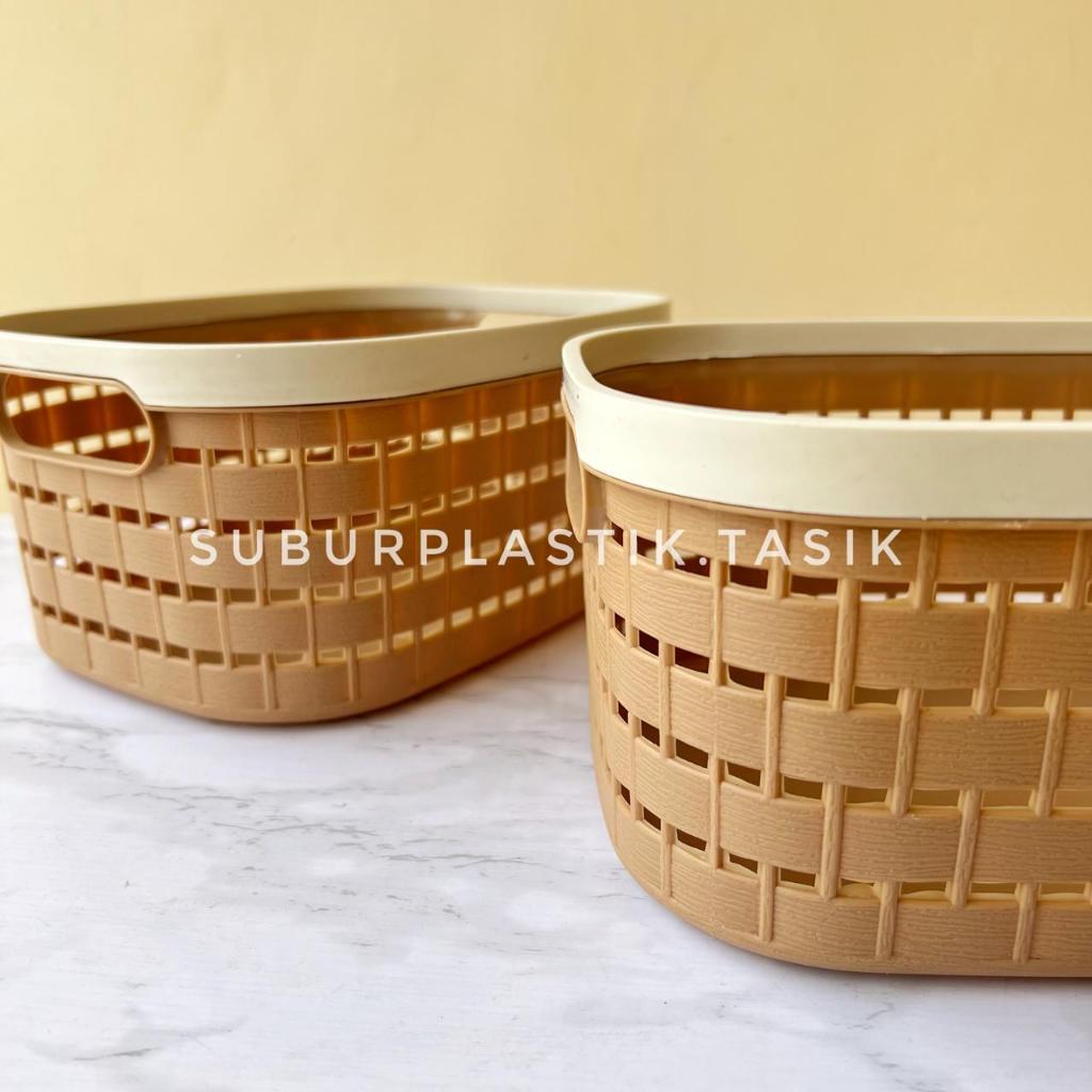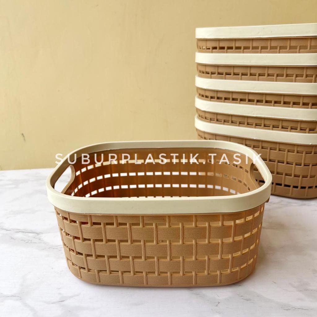 [6 pcs] Keranjang Blink Coklat Motif Kayu Anyam Plastik Tempat Penyimpanan Serbaguna Organizer