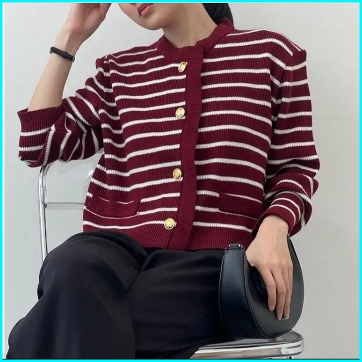Cardigan Cesy Crop Top Knitwear Premium Atasan Wanita Casy Cardi Strip Long Korean Style Cardigan Rajut Wanita Outerwear