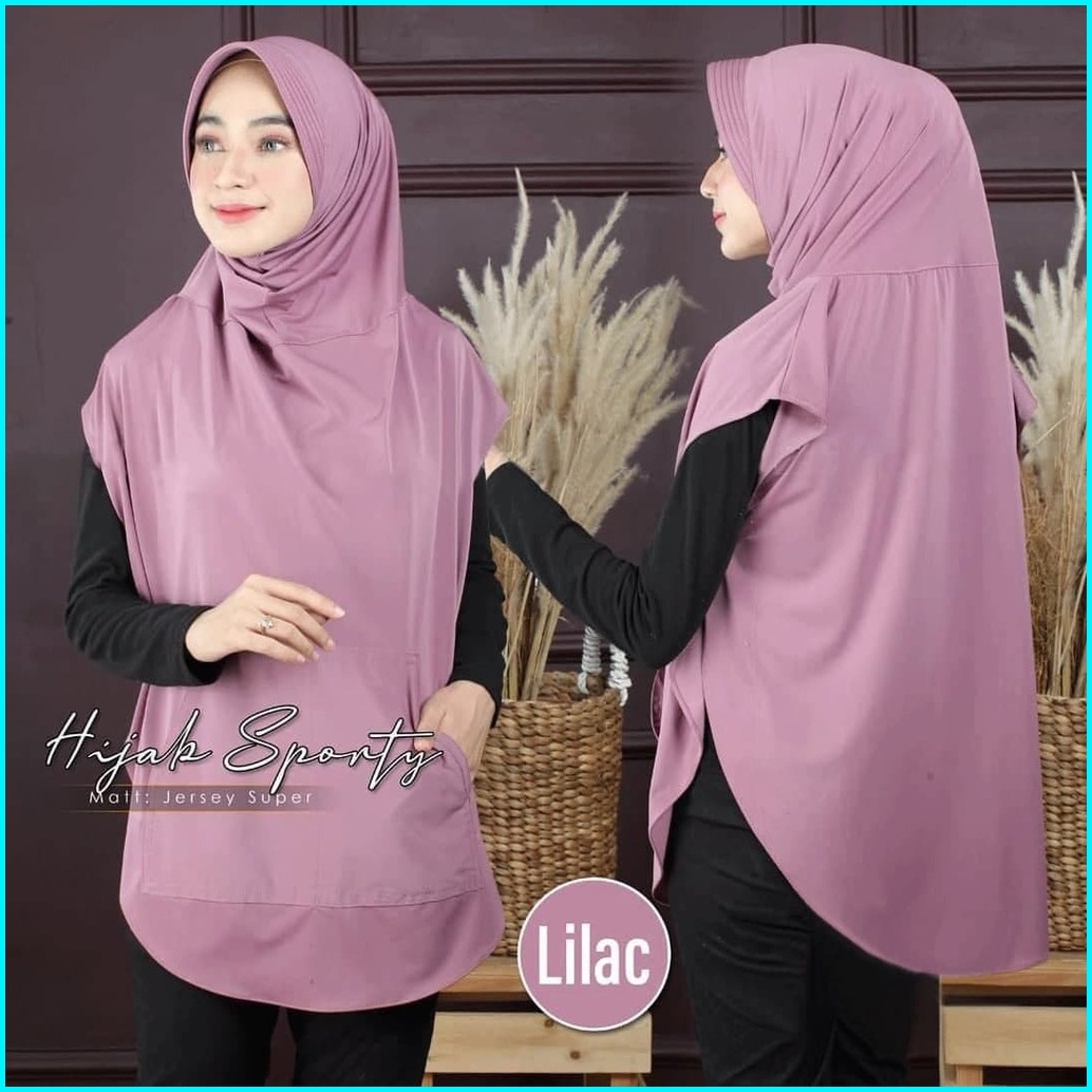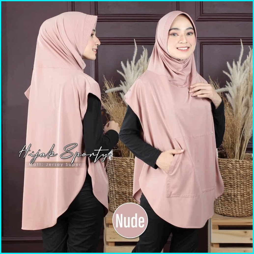 Falisha Saku Jilbab Khimar Hijab Sporty Lengan Saku Jersy Streach Kerudung Olahraga Jumbo