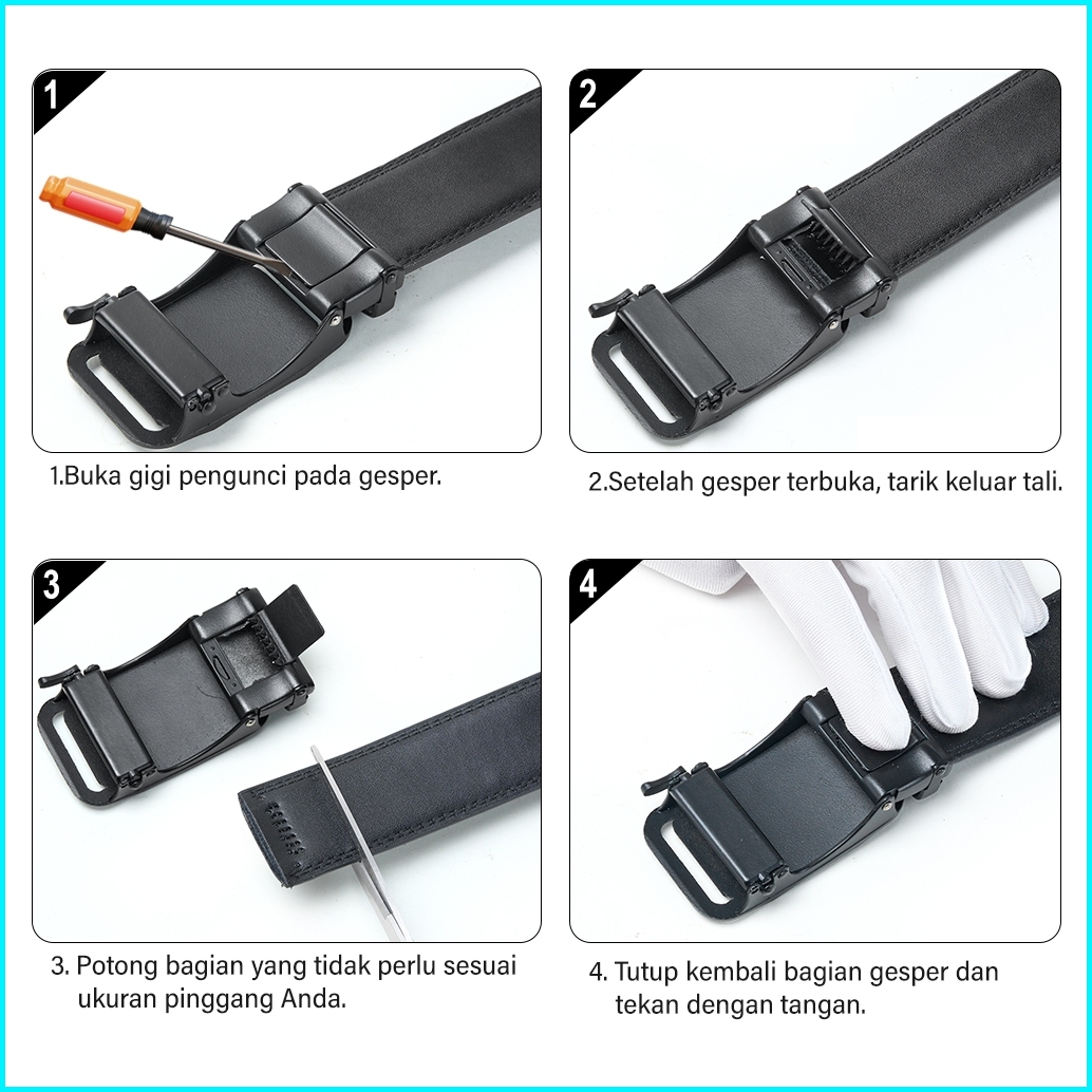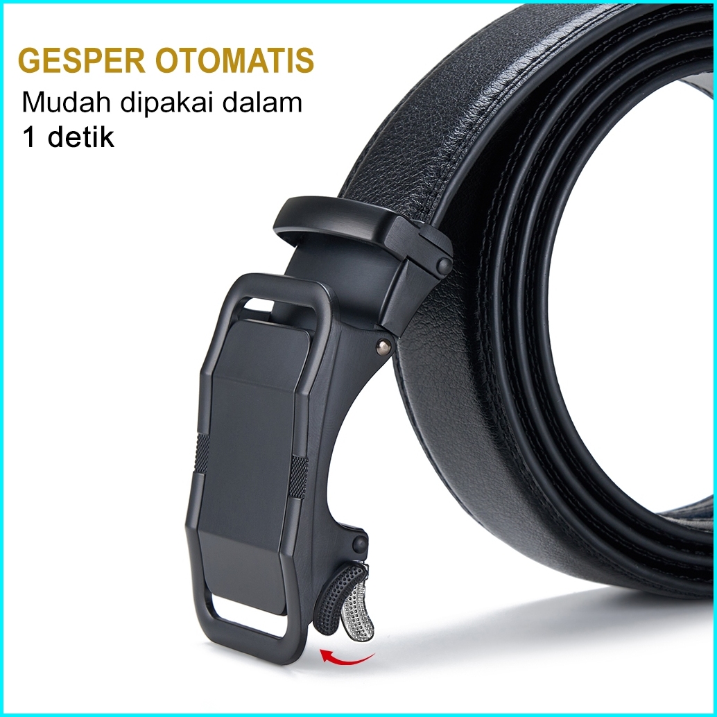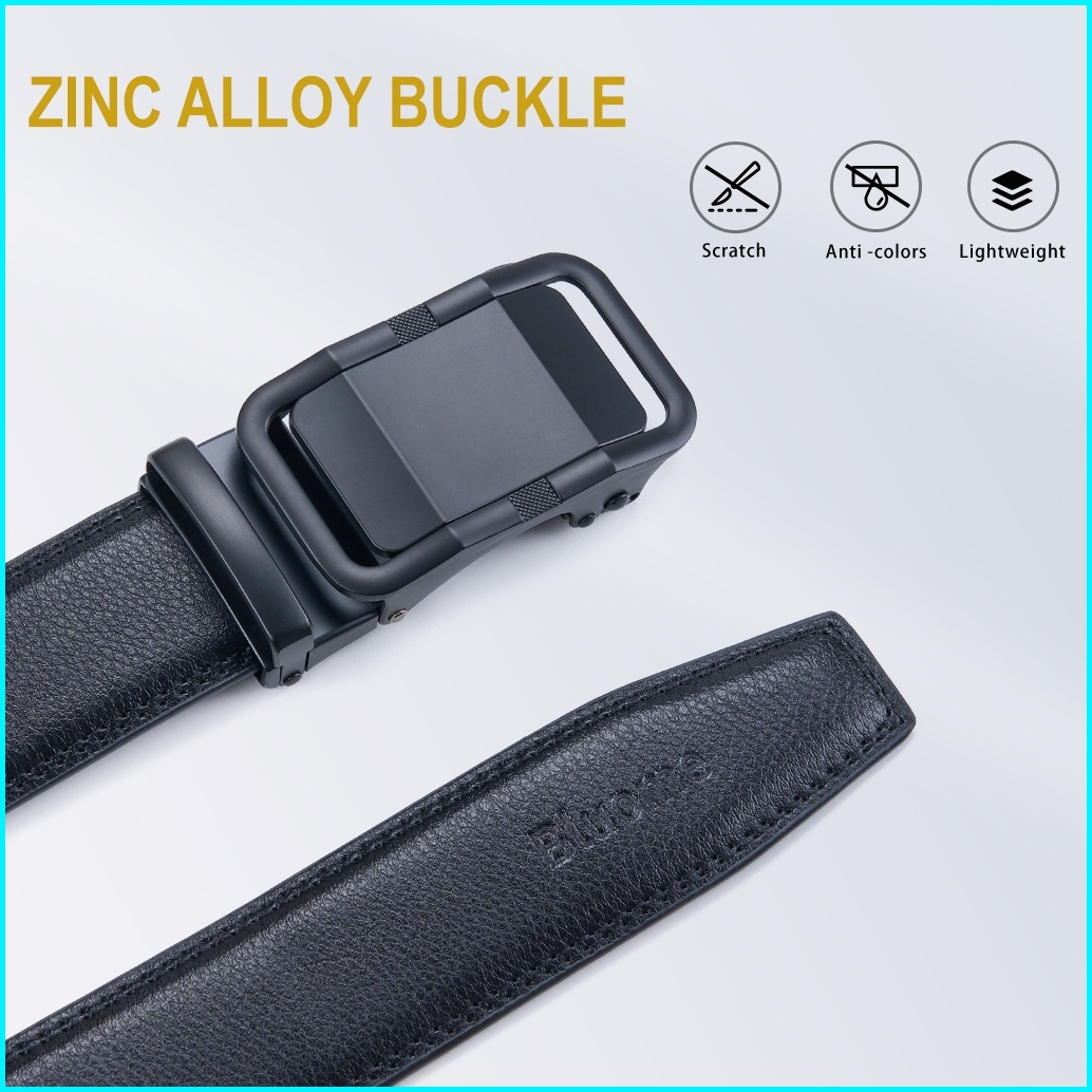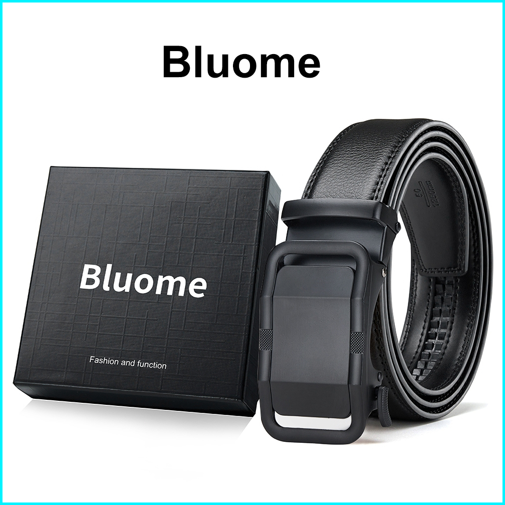 Bluome Sabuk Pria Keren Ikat Pinggang Kulit Sapi Asli Gesper Model Rel Otomatis Men Belt Fashion