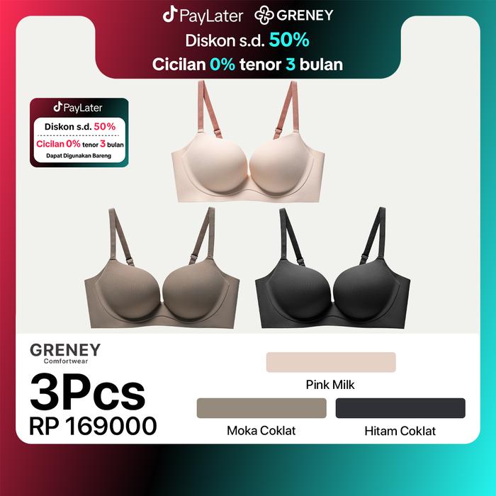 Greney-Gbras-(3Pcs)Bra One Piece Warna Bh Wanita Beha Pakaian Dalam Remaja Basic Tanpa Kawat Cewek Lingerie Plain Desain