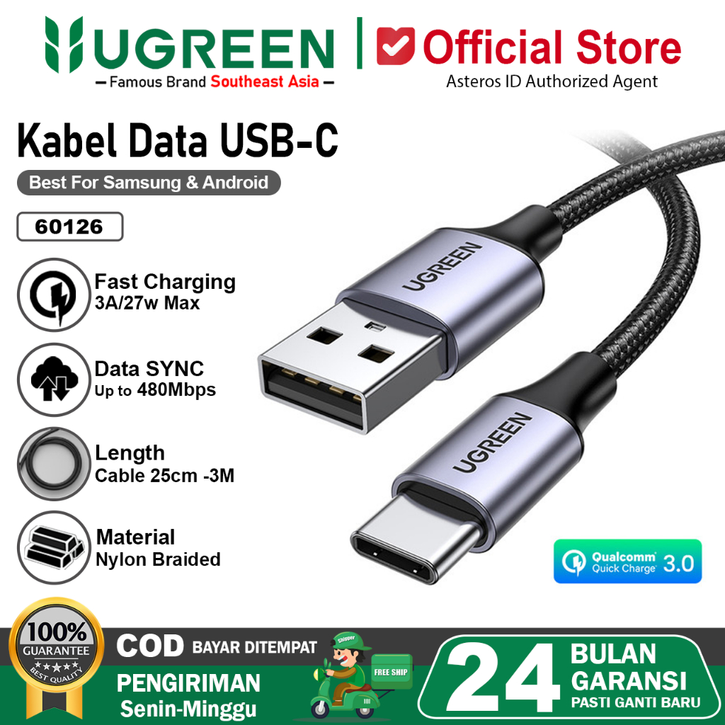 Gratis Ongkir UGREEN Kabel Data USB Type C Nylon Braided Fast Charging 3A 1M 2M 3M Kabel Data Type C Murah