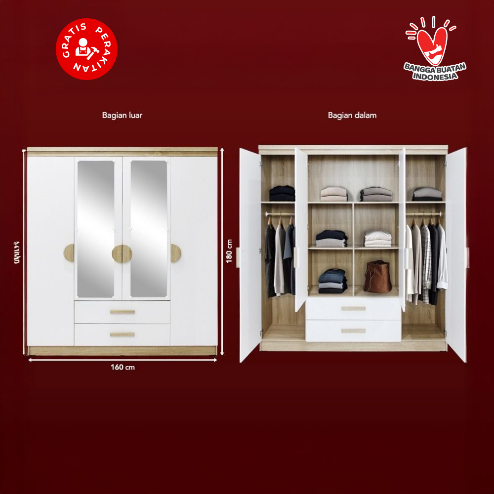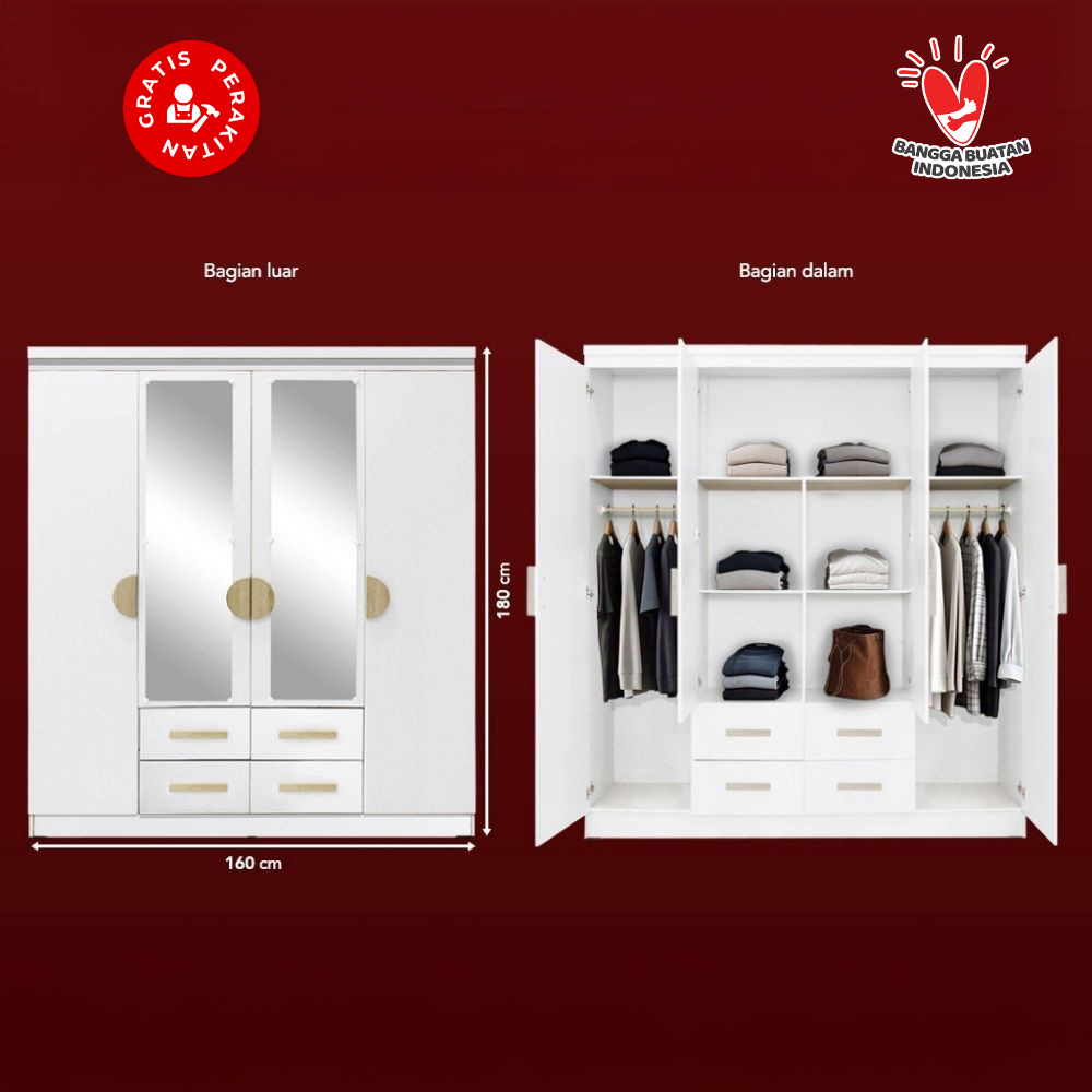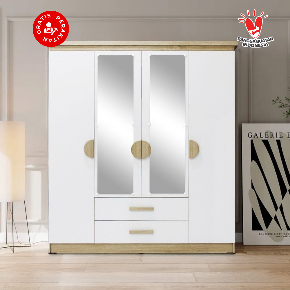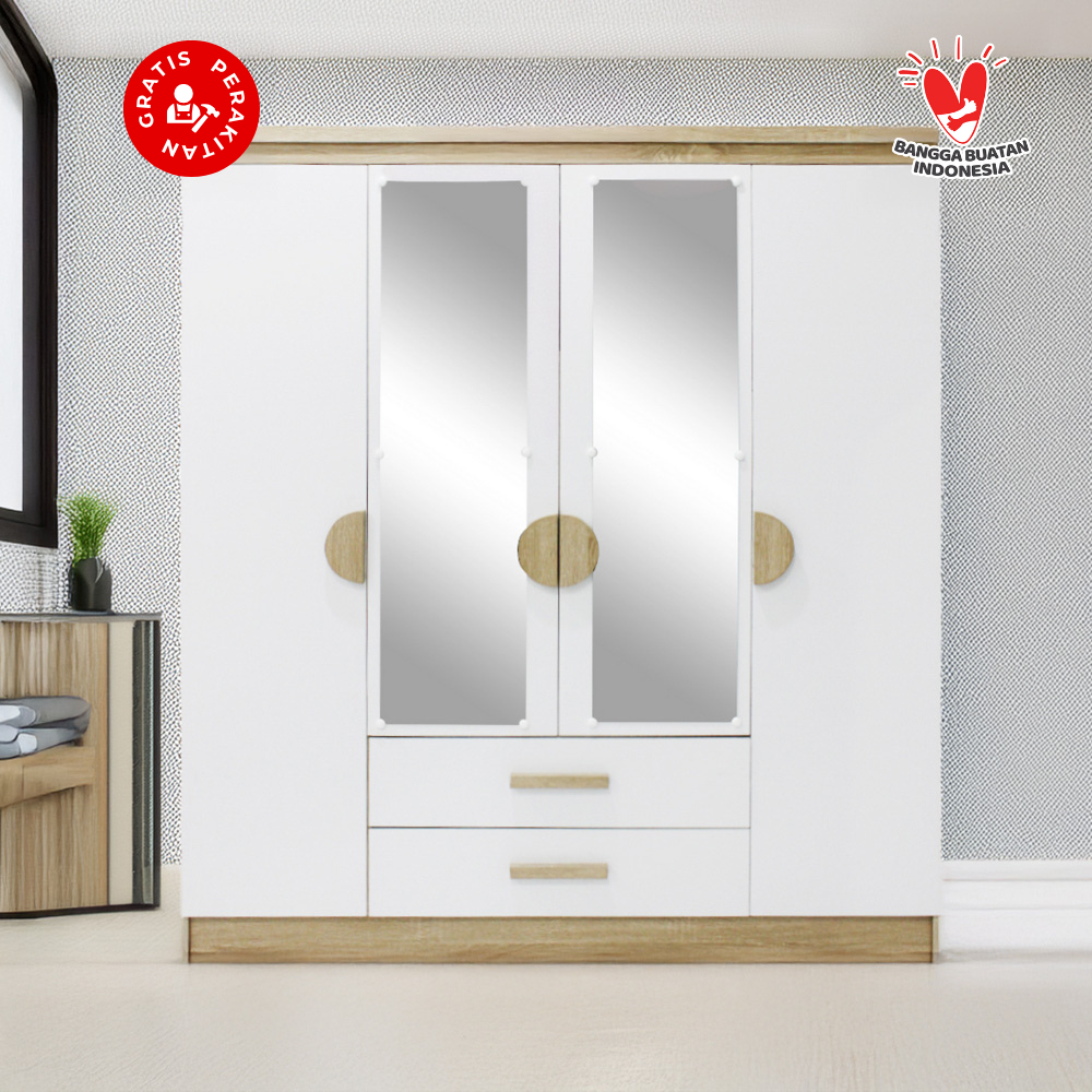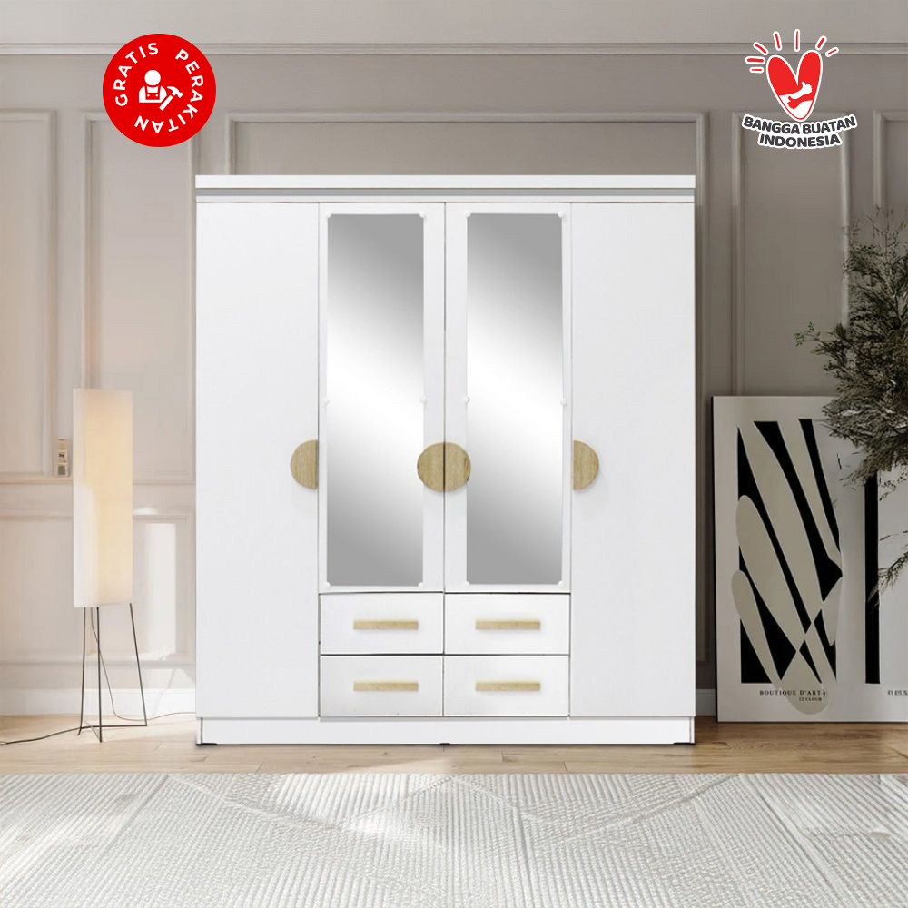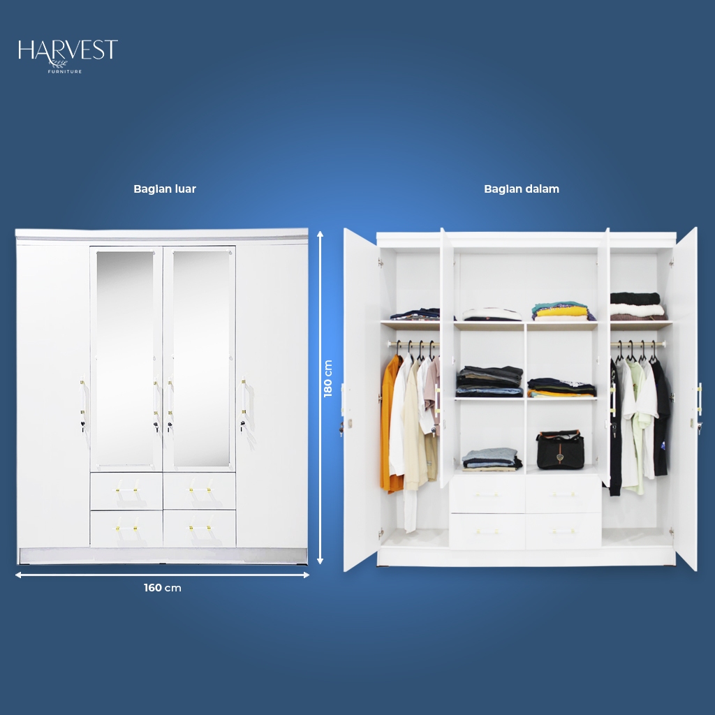 Harvest Furniture Lemari Pakaian Baju 4 Pintu Murah Modern Minimalis