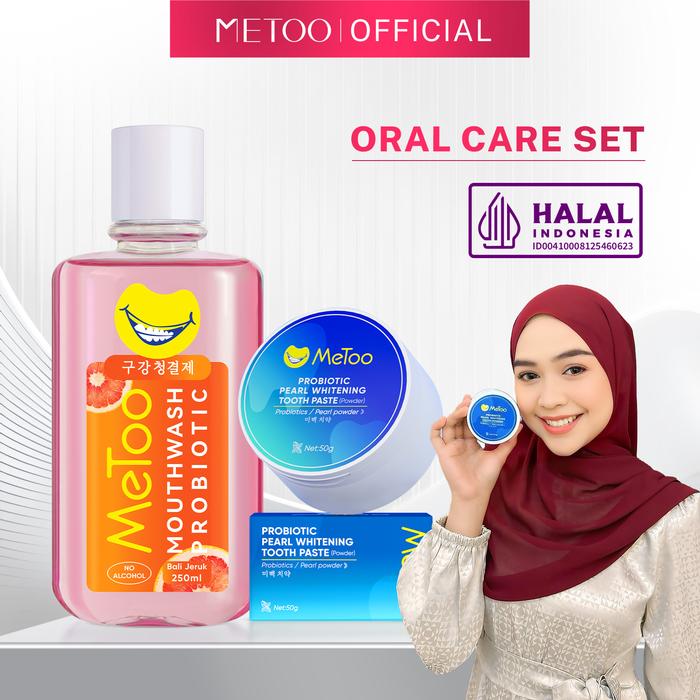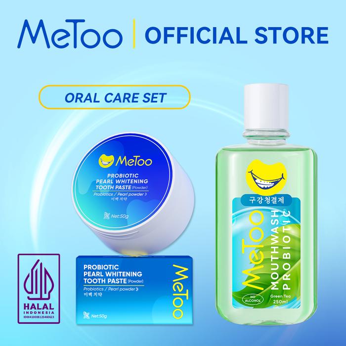 [Live Exclusive]Metoo Teeth Whitening Powder+ Metoo Mouthwash 250Ml / Oral Care Set /Probiotik / Nafas Segar / Menghilan