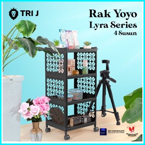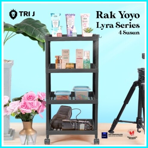 Rak Yoyo Plastik 4 Susun Rak Serbaguna 4 Tingkat Roda Rak Kotak Serbaguna Roda - Rak Multifungsi Rak Portable