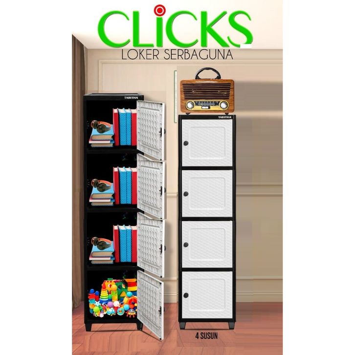 LEMARI PLASTIK SERBAGUNA 1 PINTU TABITHA CLICKS TOWER 1 PUTIH CREAM WARNA 2 3 4 5 SUSUN LACI ROTAN