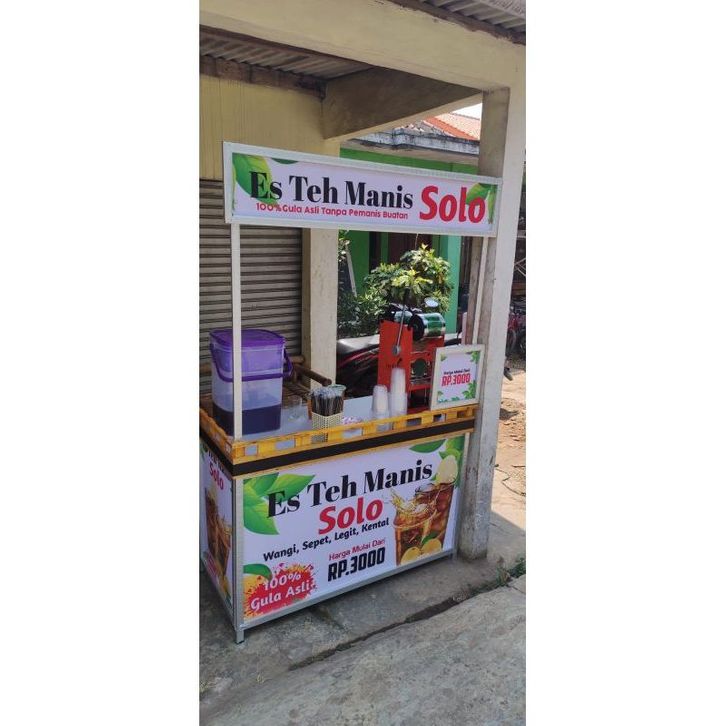 Booth portable gerobak meja lipat bahan aluminium baja ringan bisa bongkar pasang