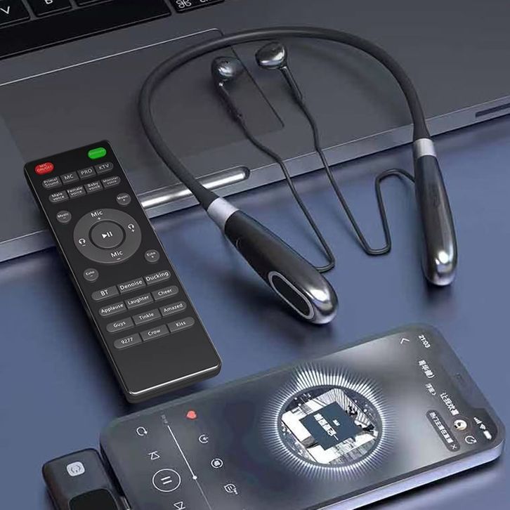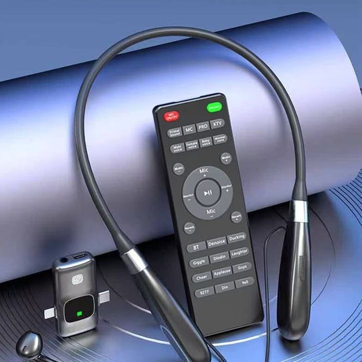 Mikrofon Bluetooth E8 2 In 1, Headphone Neckband, Pengeditan Audio Langsung, Suara Surround