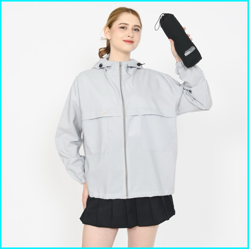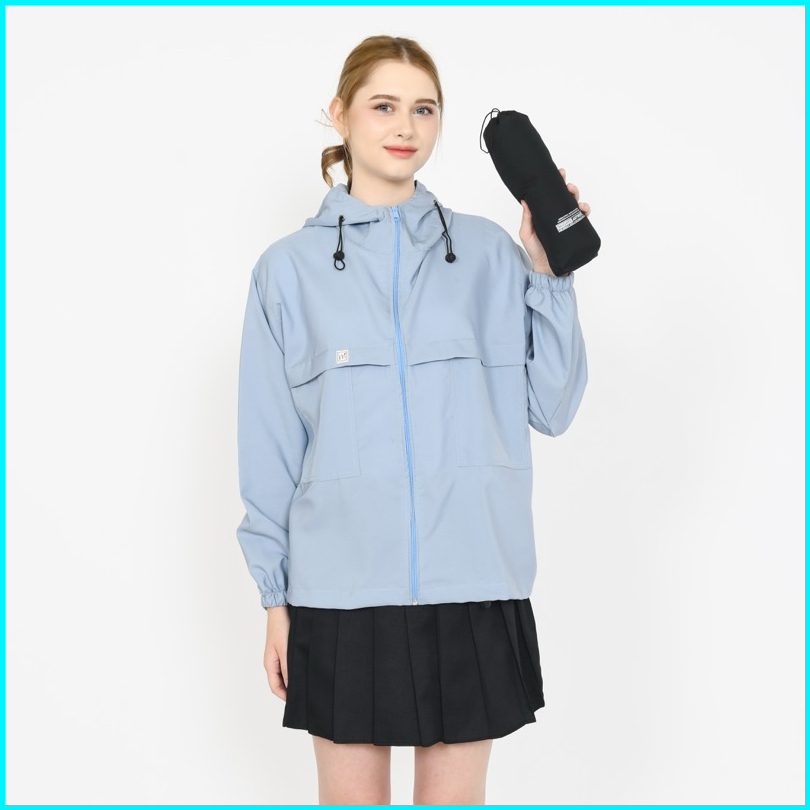 Gratis Pouch Jacke Mighty.up - Jaket Olahraga Parasut Polos Pria Wanita Sauna Suit Jogging Lari Bersepeda Despo Gym Fitn