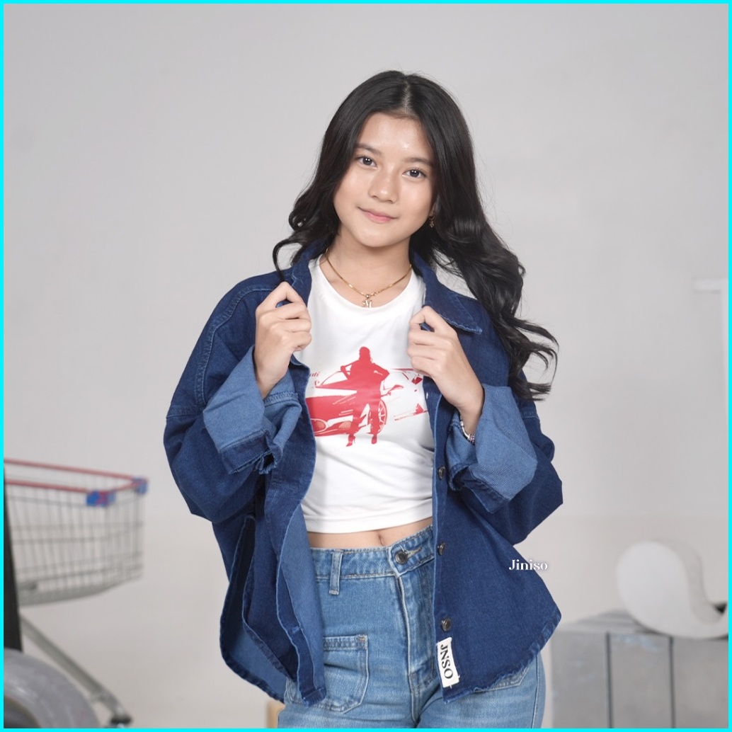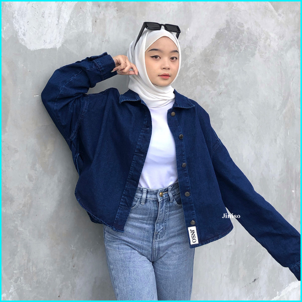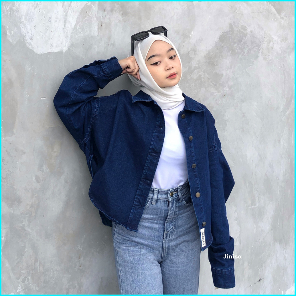 Jiniso Jaket Crop Jeans Oversize Belle Basic Blue Black