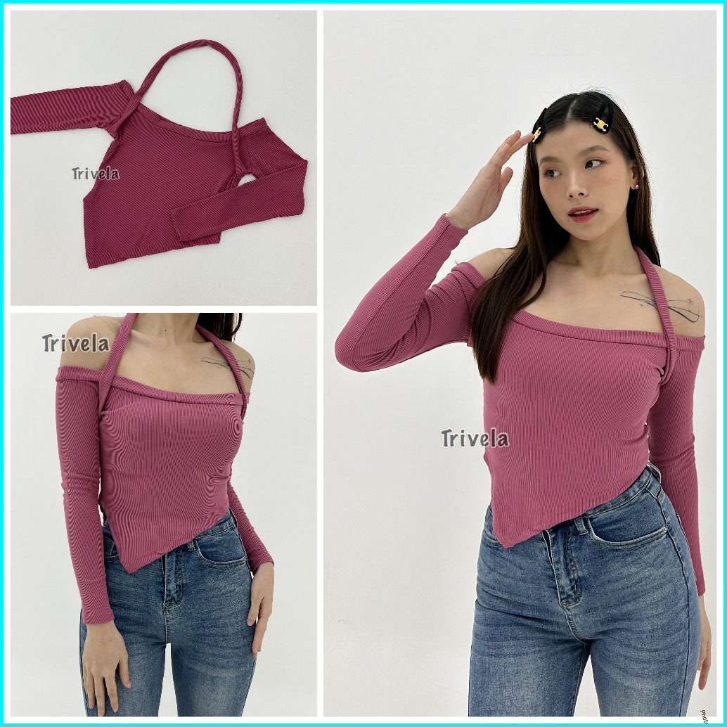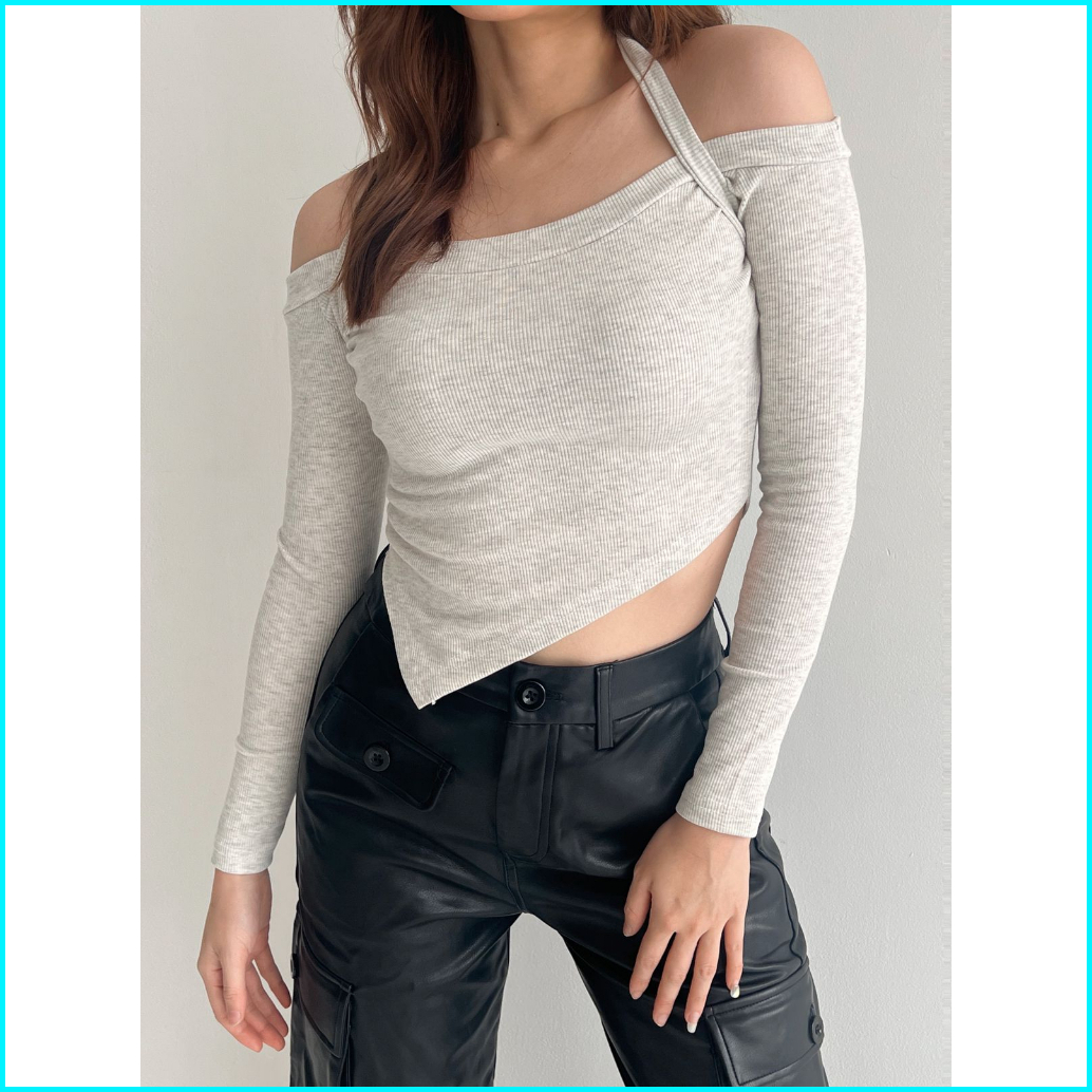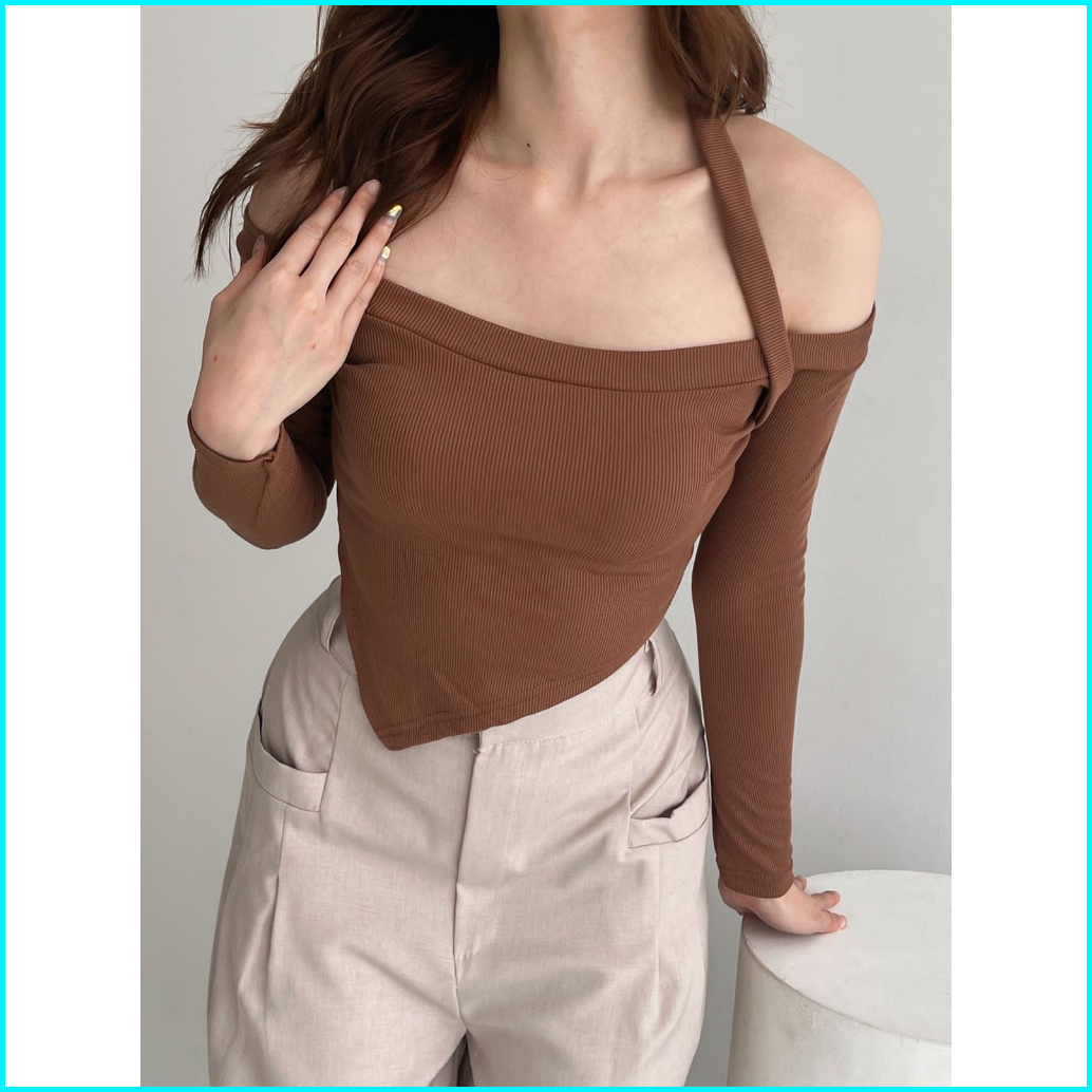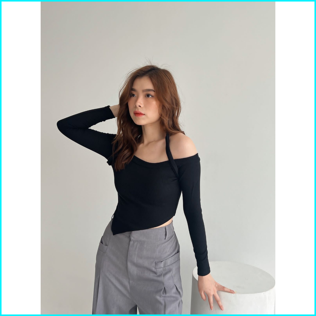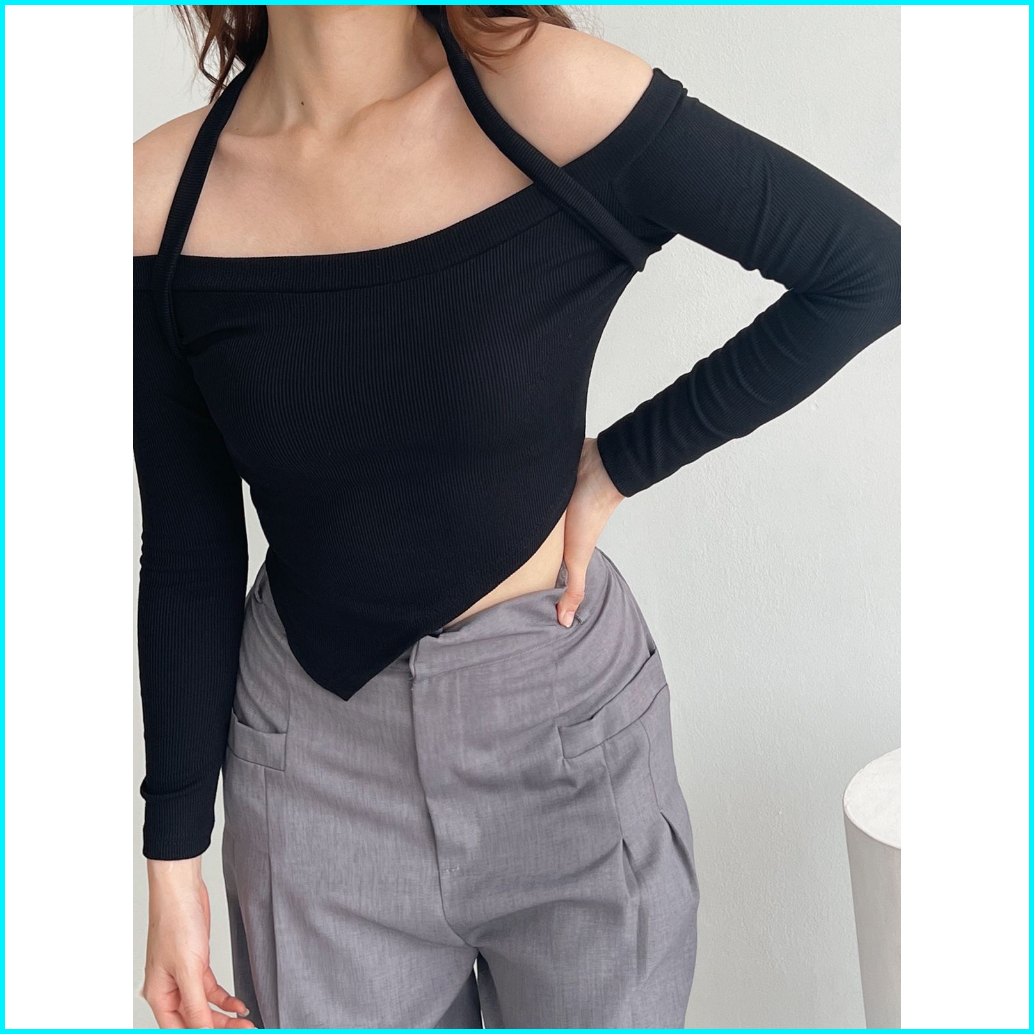 Floryn Halter Neck Two Ways Crop S-xxl Baju Wanita Knit Korean 002 Floryn Nkd