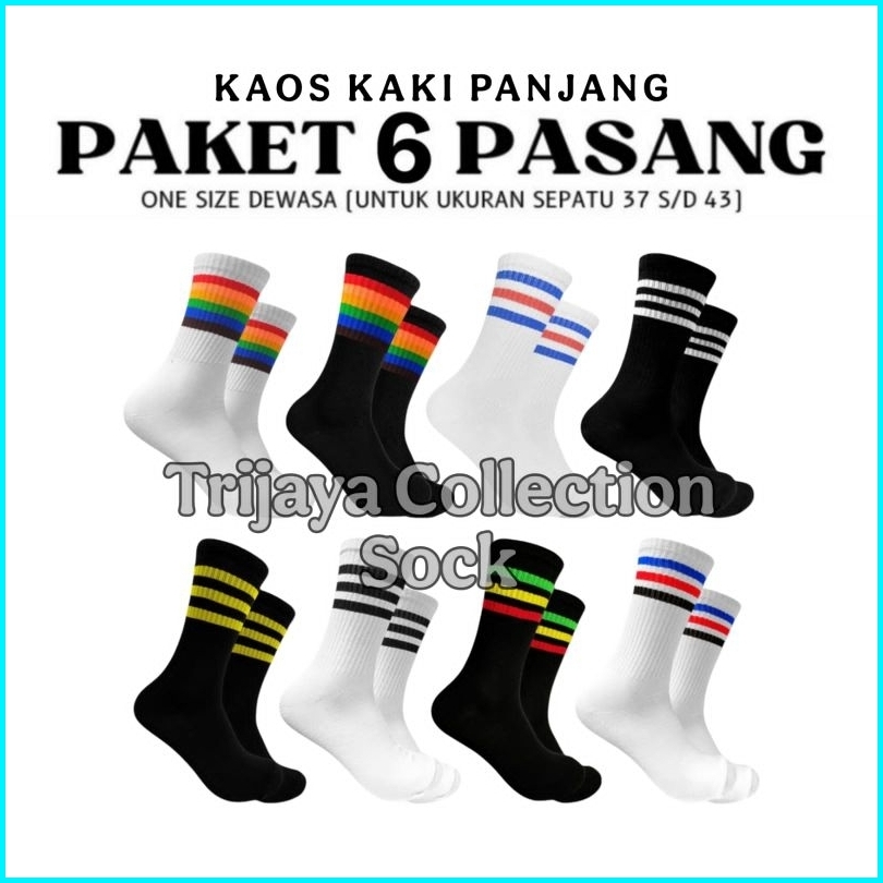 Paket 6 Pasang Kaos Kaki Oldschool Panjang Motif Garis Pria Wanita Dewasa Kaos Kaki Olahraga Strip Sebetis Unisex