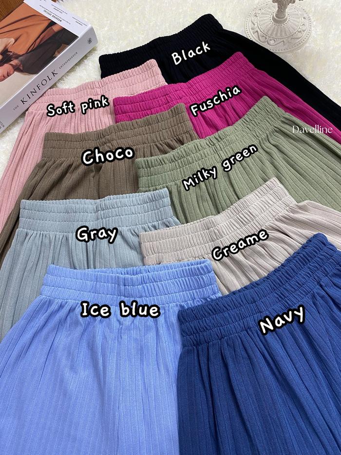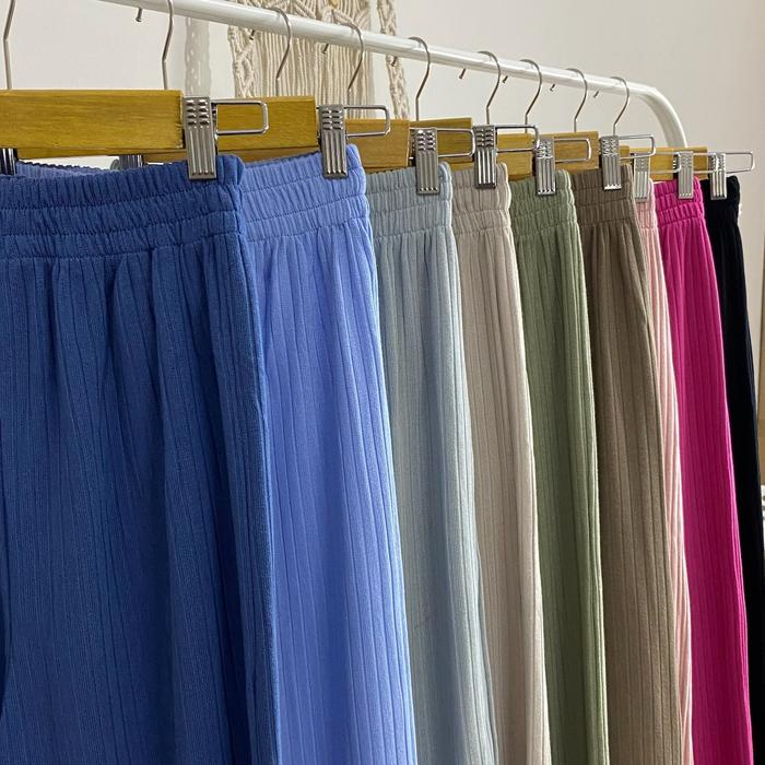 Davelline Celana Kulot Knit Berkualitas Kinan Knit Pants Premium Basic Lembut Panjang - Black, Jumbo