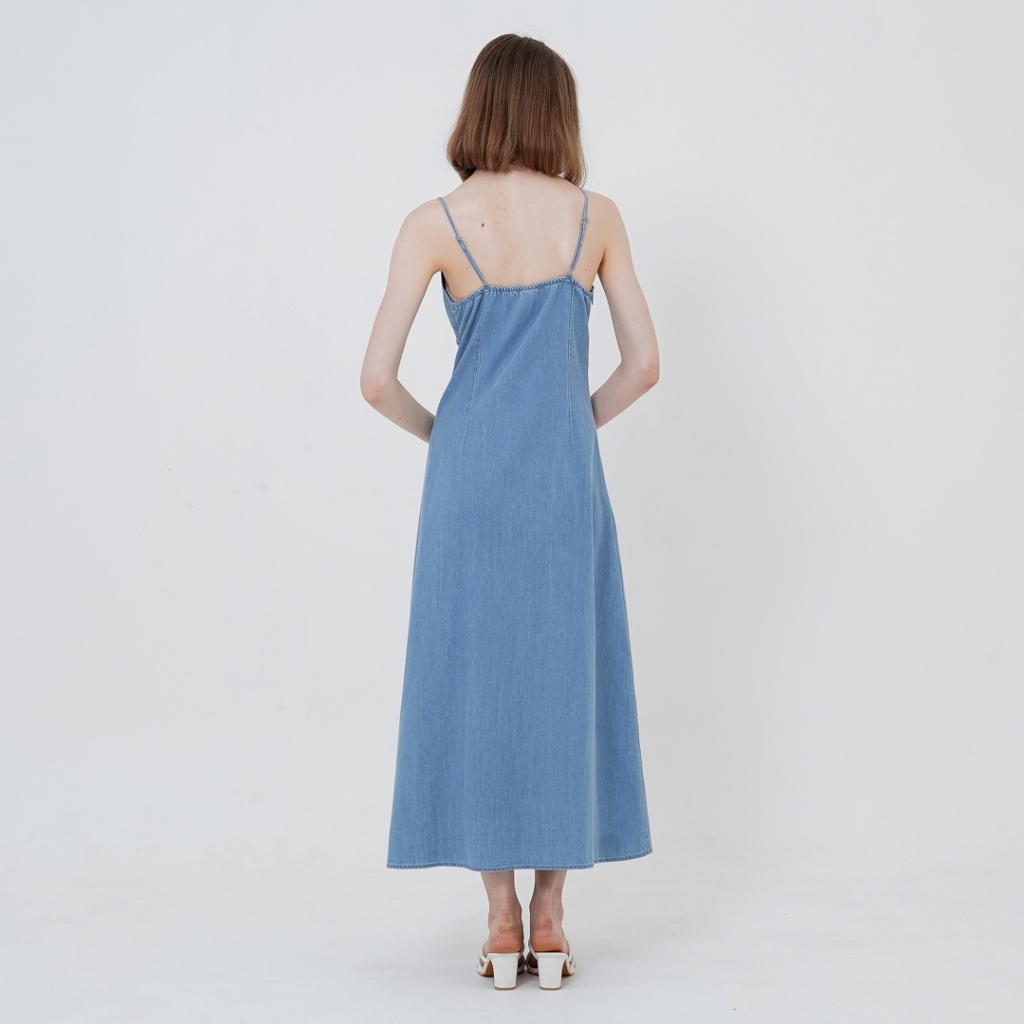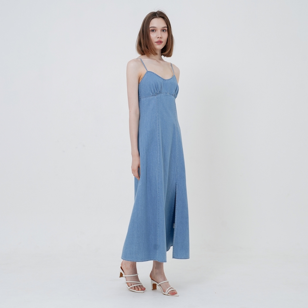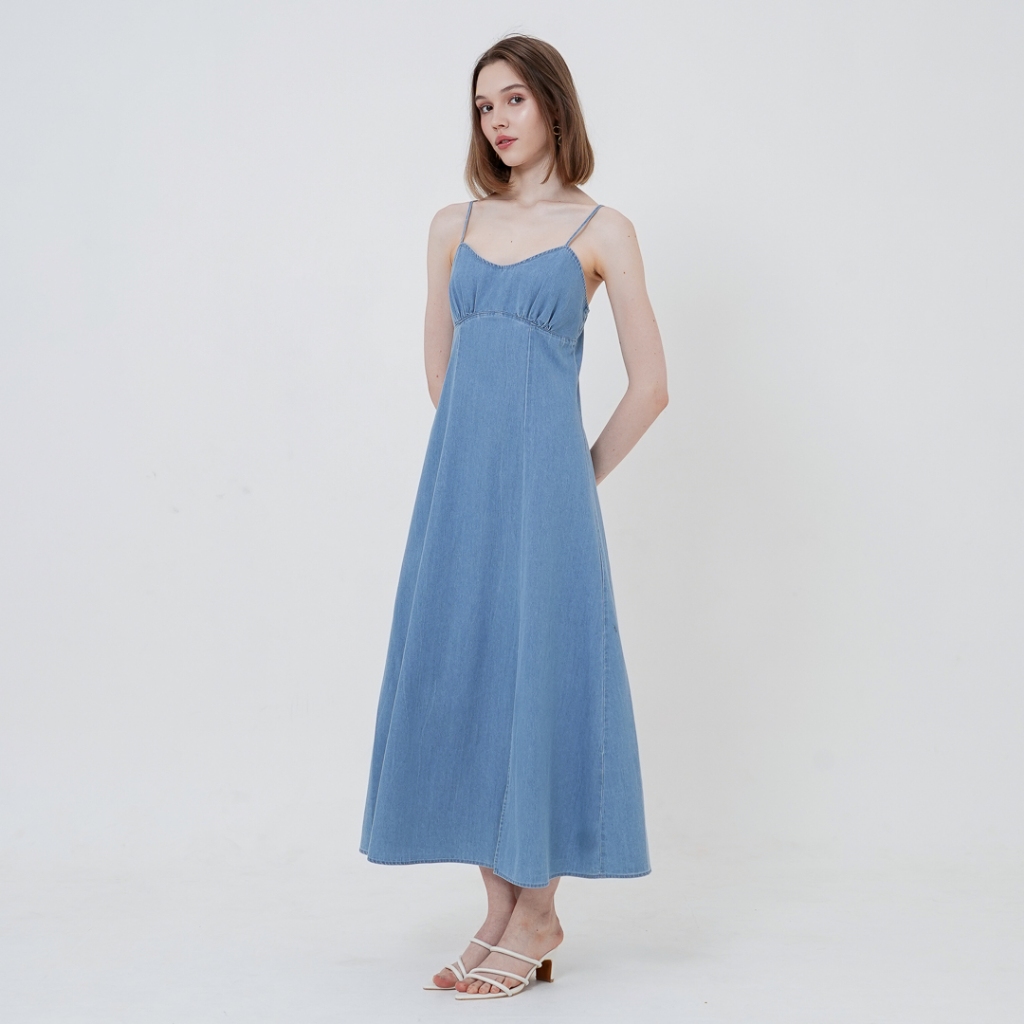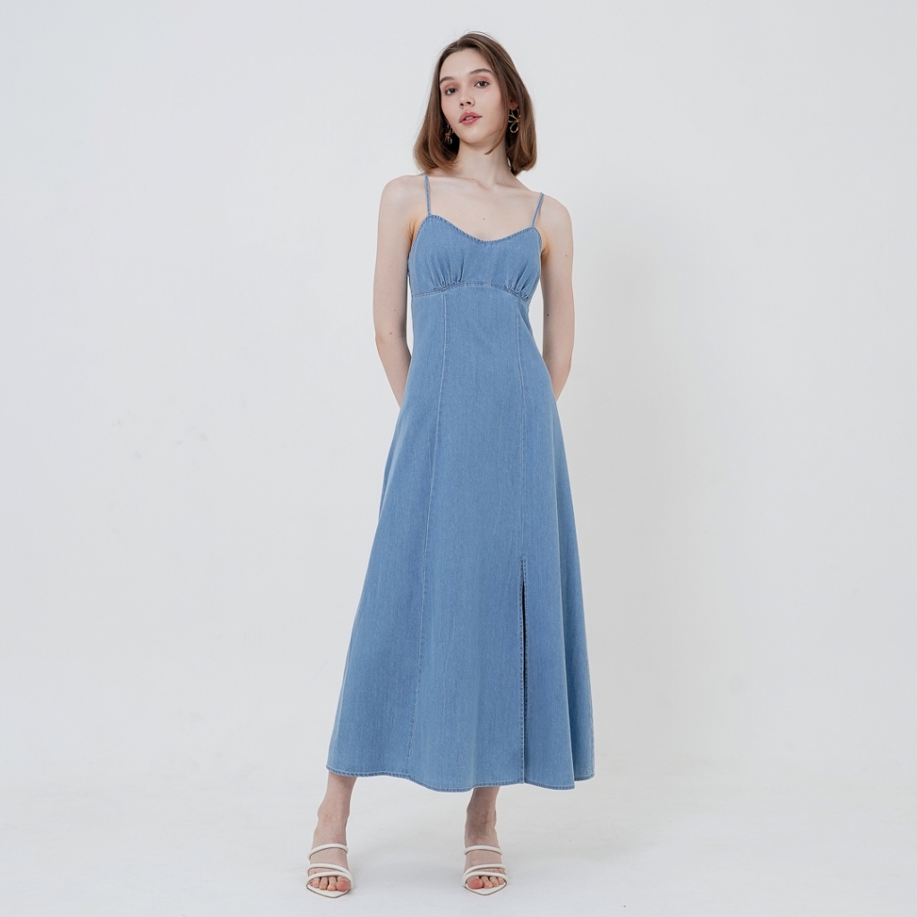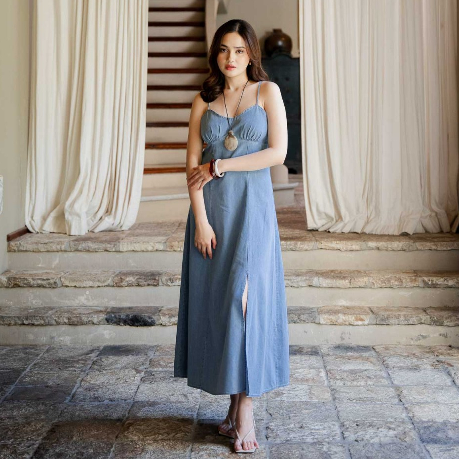 This Is April X Syifa Hadju Vol.II Gaun Maxi Jeans Wanita Tanpa Lengan Karenina Dress Denim 70013000