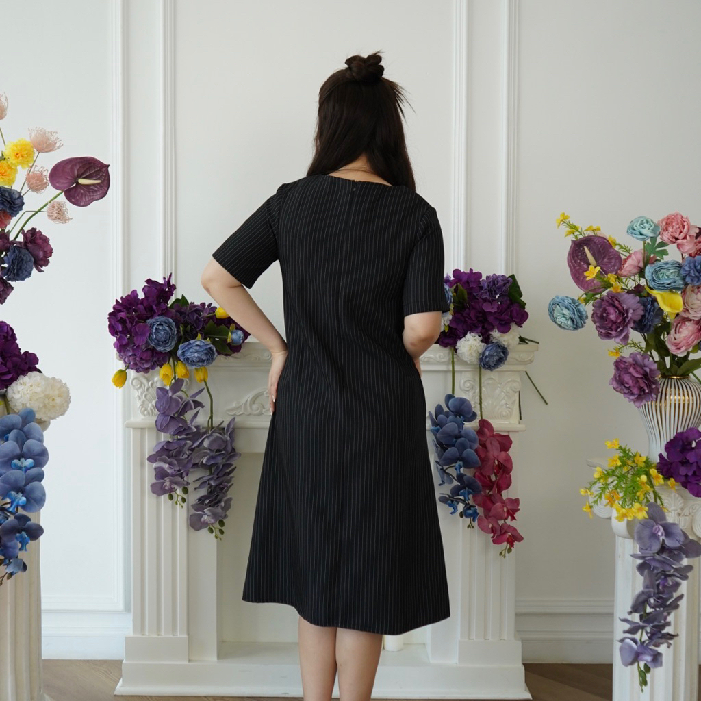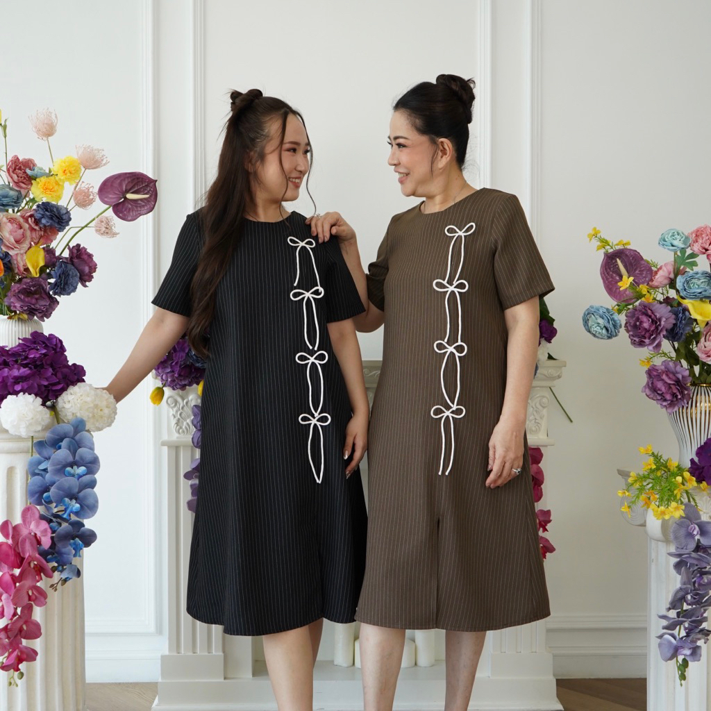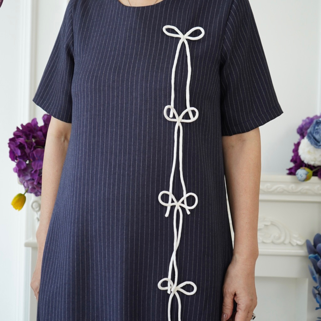 (Victoria Wear House) Malva Dress - Dres Midi Lengan Pendek Aksen Pita Pakaian Wanita