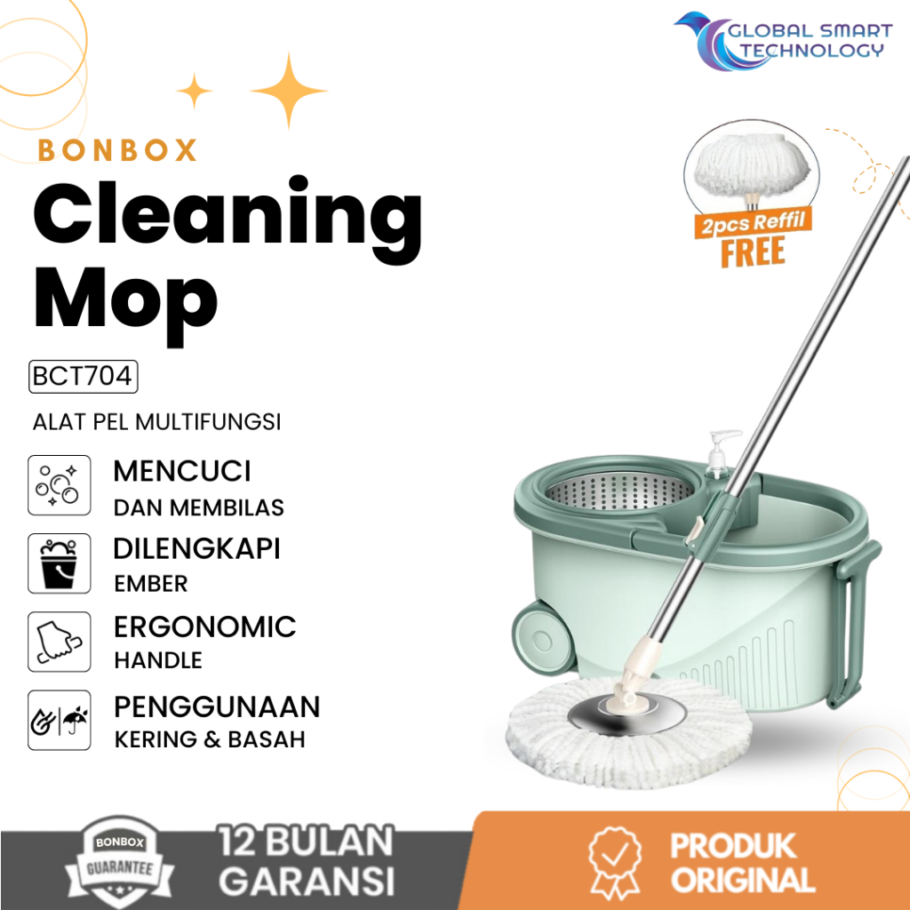 BONBOX BCT704 Alat Pel Lantai Kain Ultra Spin Mop Tongkat Kain Pel Putar Lantai Putar Dengan Ember Roda Alat Pembersih L