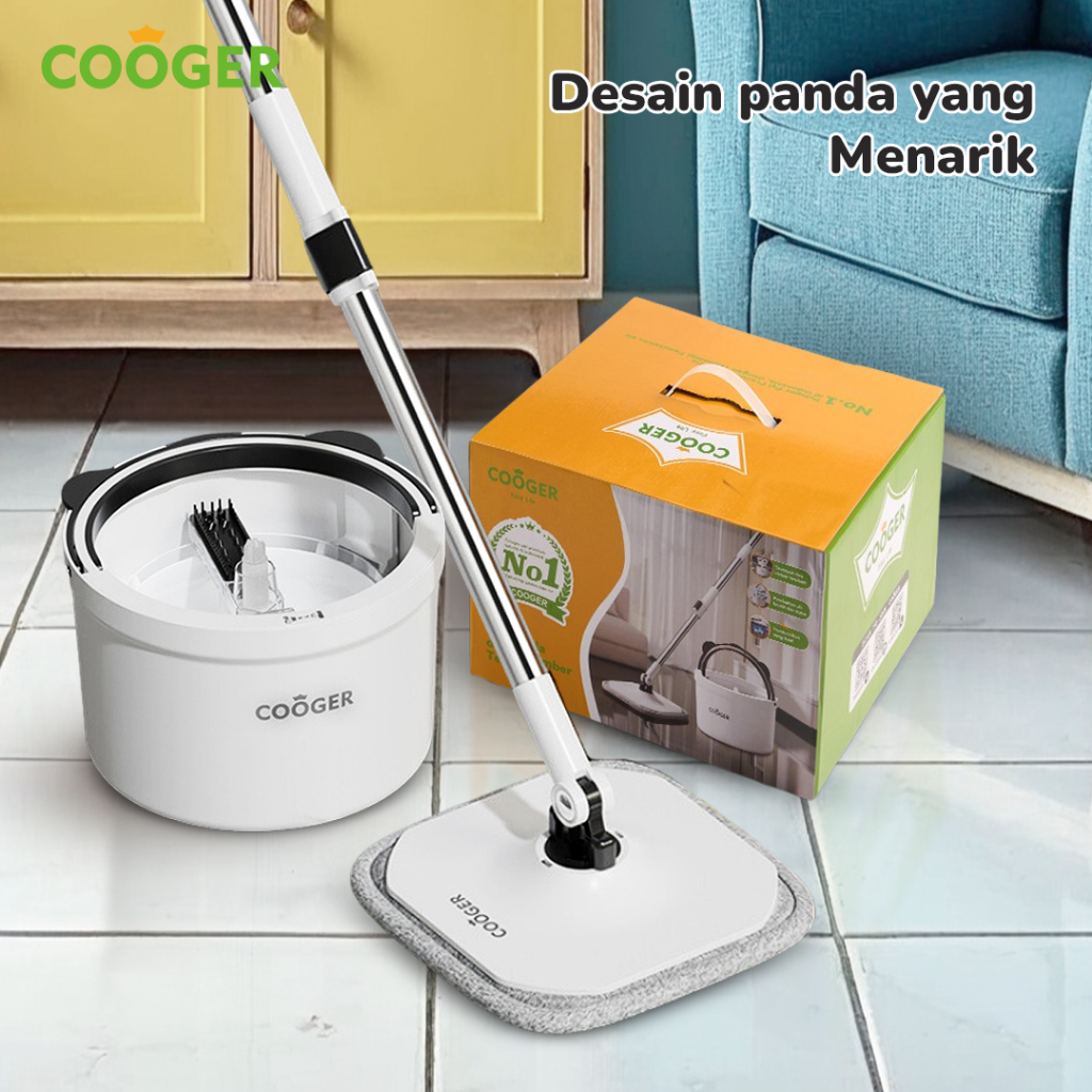 COOGER Alat Pel Single Spin Mop Panda Bucket Spin Mop Alat Pel Lantai 2IN1 Dalam Satu Ember Pel Putar Bentuk Panda