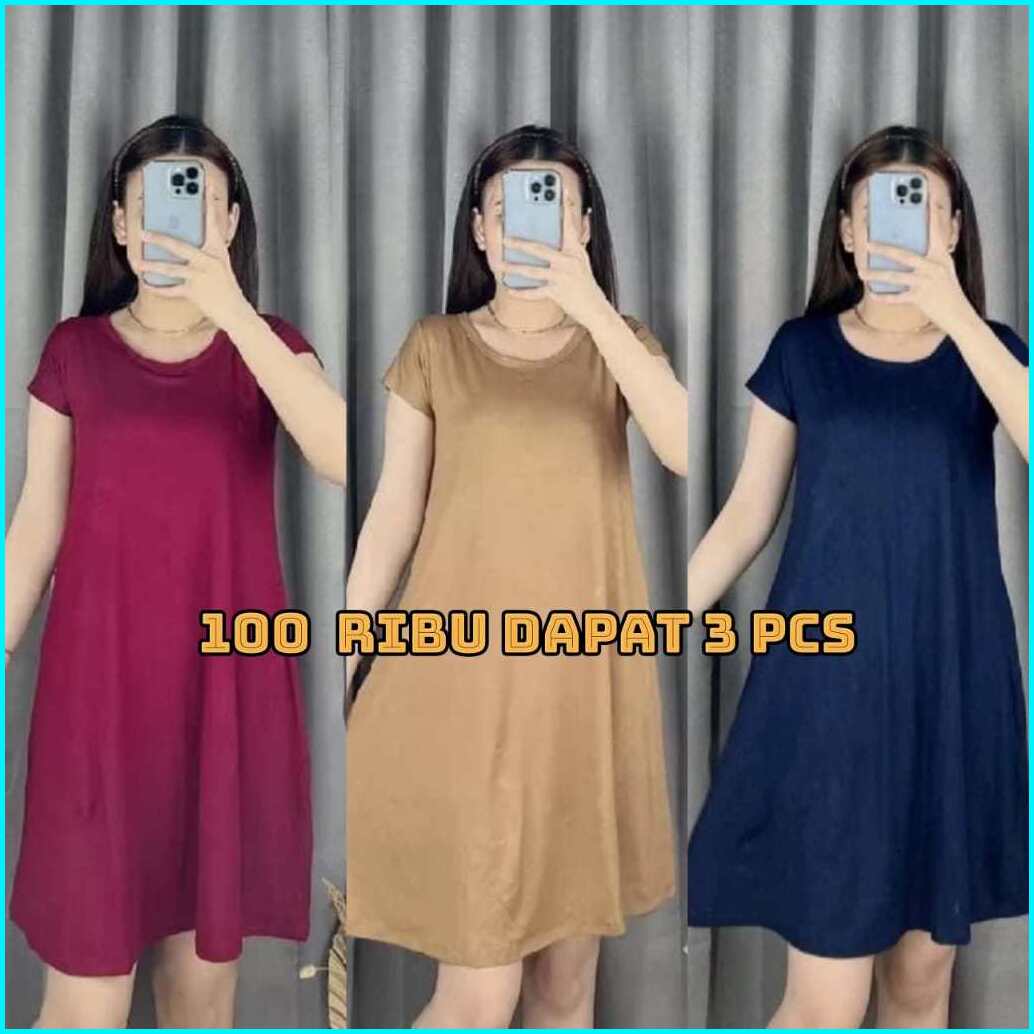 100 Ribu Dapat 3 Pcs Dress Mola Spandek Rayon Daster Wanita Dewasa Polos Baju Tidur Wanita
