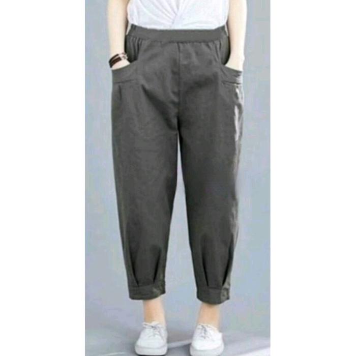 Mera Pants Celana Panjang Wanita 7/8 Oversize Bahan Cotton Twill Premium Stretch Nyaman Pinggang Full Karet - Hitam, Xl