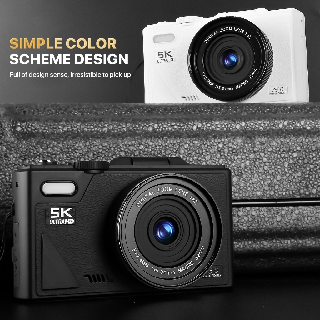 【Dengan Kartu 64GB】TEEKA 75MP Digital Camera Flip Wifi Kamera Digital 5K 18X Digital Zoom Dengan Dukungan Selfie Koneksi
