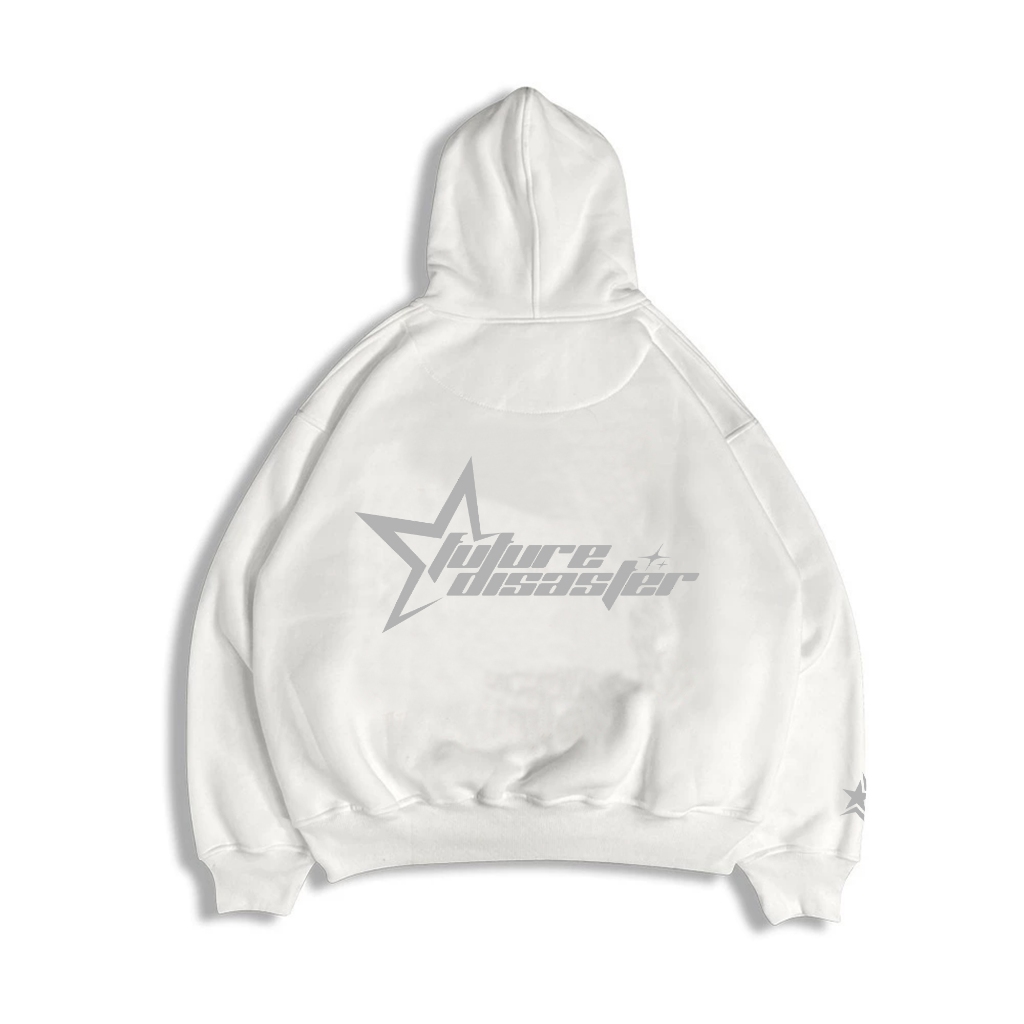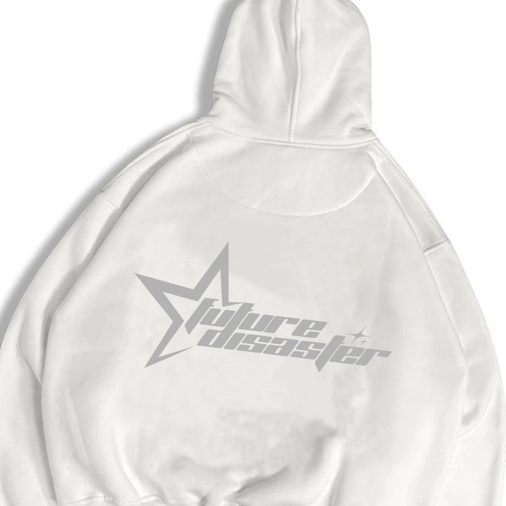 Gadabang Hoodie Boxy Oversize Menyala Sablon Reflective Future Disaster Putih