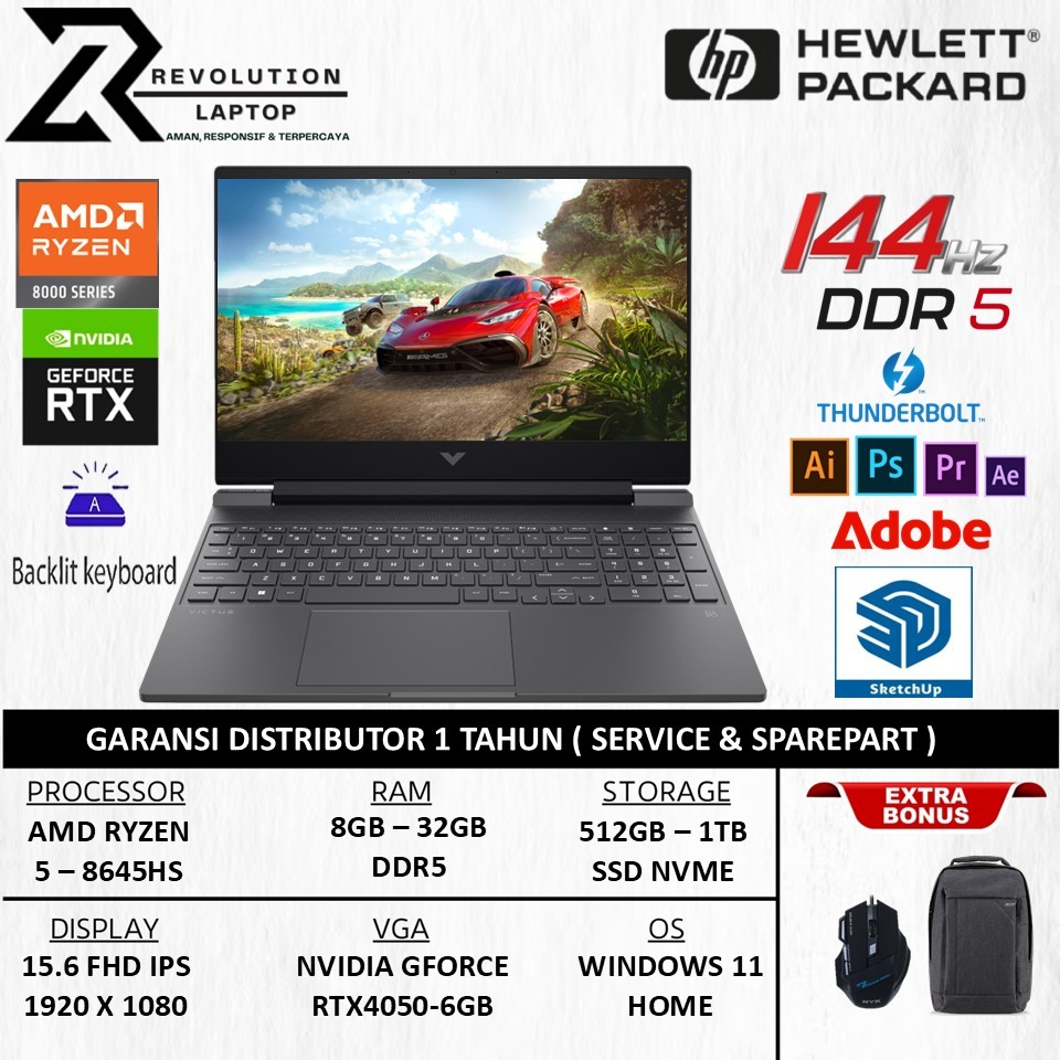 Laptop Gaming HP Victus 15 AMD Ryzen 5 8645HS RTX4050 Ram 32GB 1TB SSD FHD 144hz Windows 11 Home