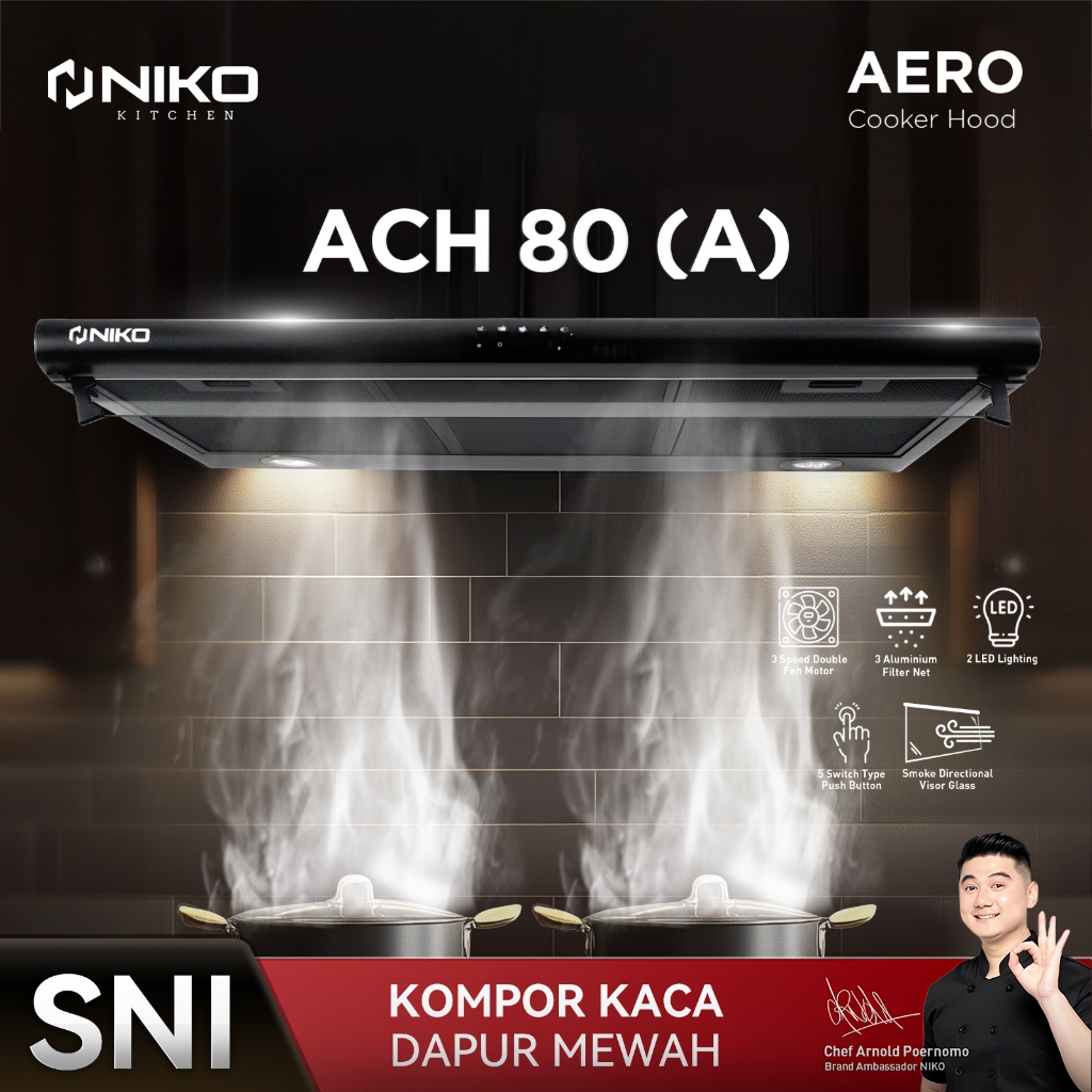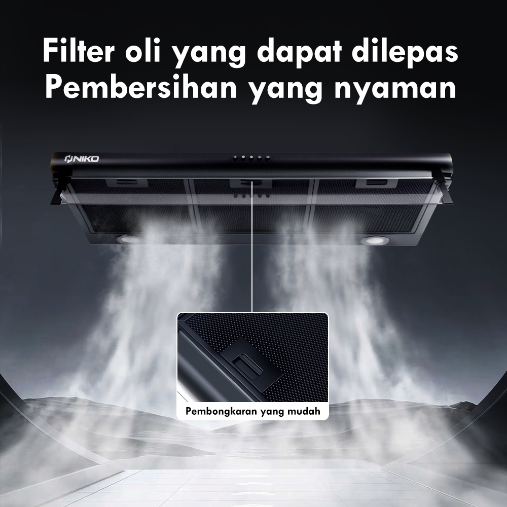 [Star] Niko ACH80 Cooker Hood Low Watt Hisapan kuat penghisap asap 80cm Kap mesin-Hitam