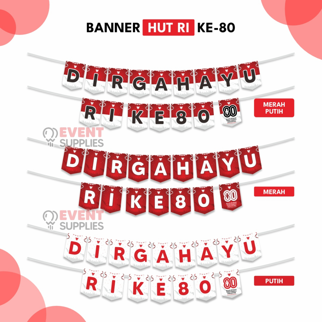Banner Dirgahayu Kemerdekaan RI Ke 80 Lengkap Dekorasi HUT RI Kemerderaan Indonesia / Agustusan 17 an