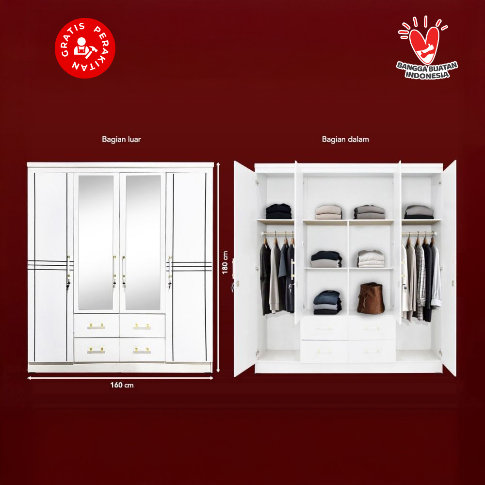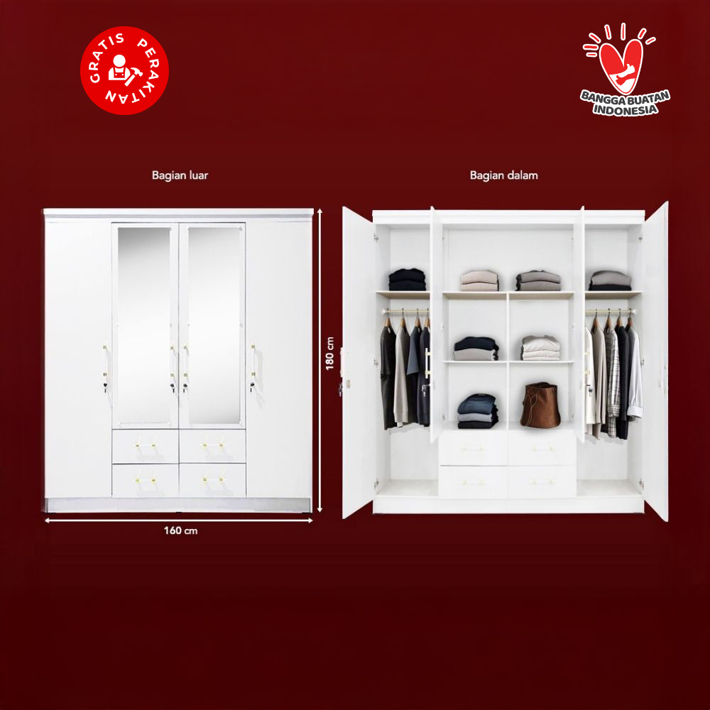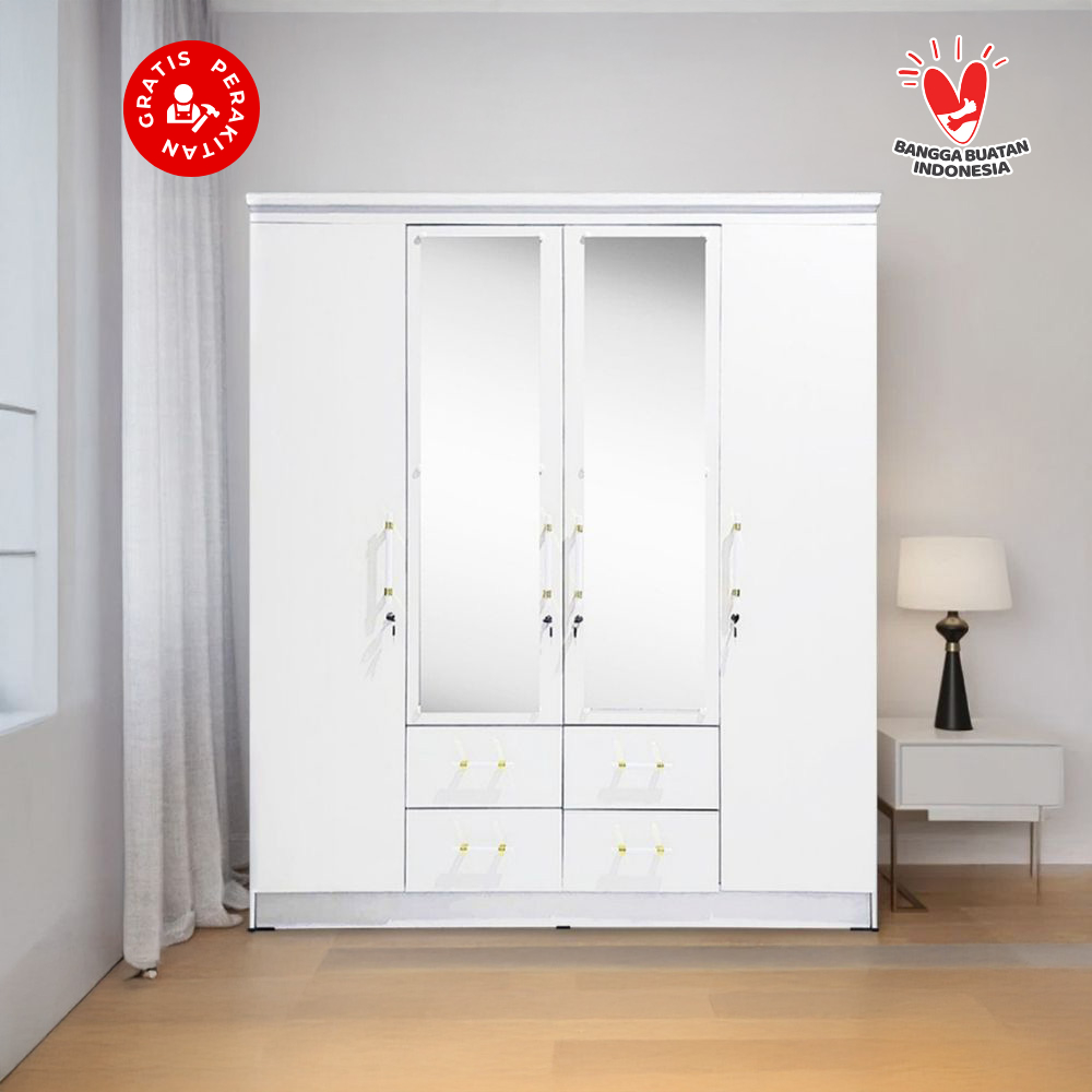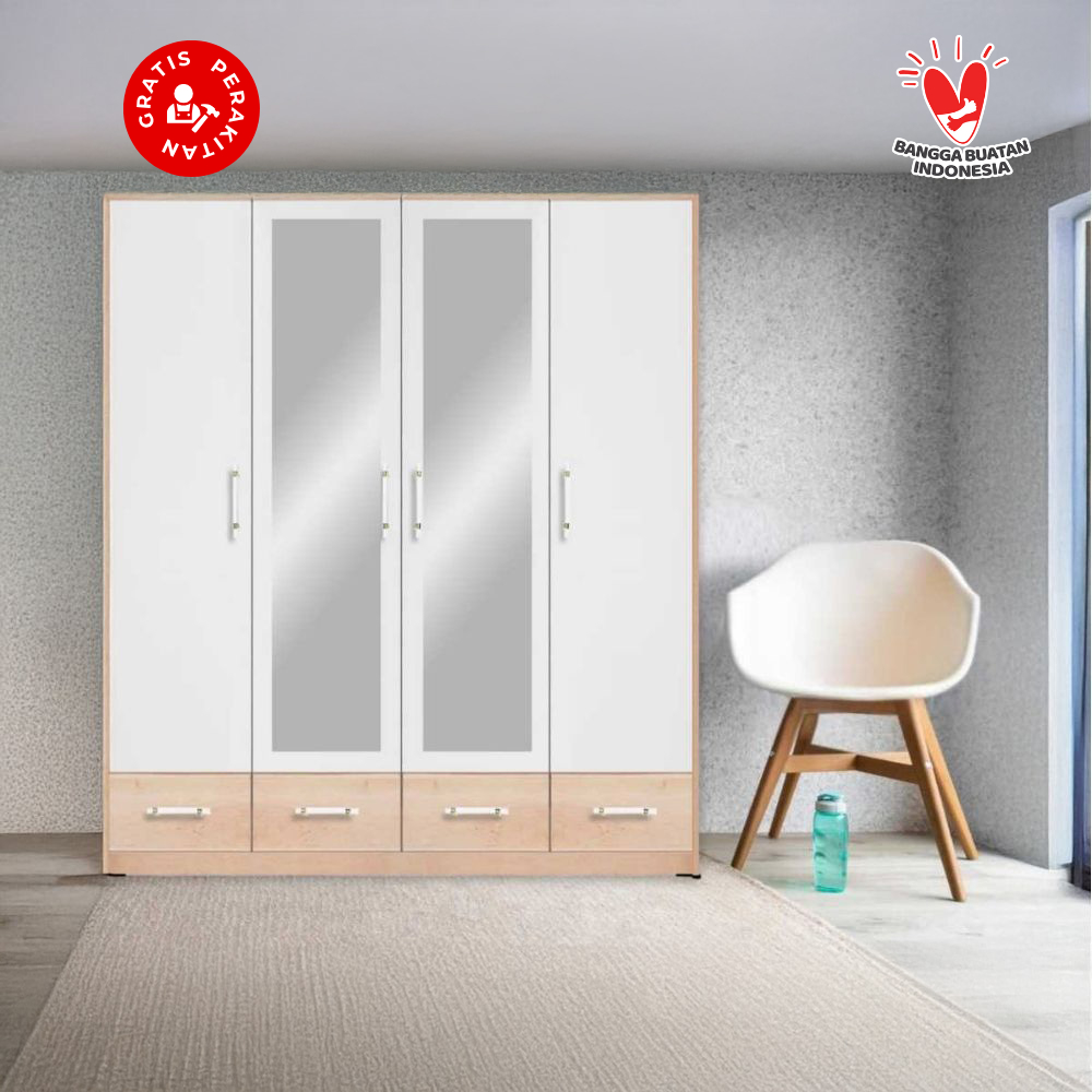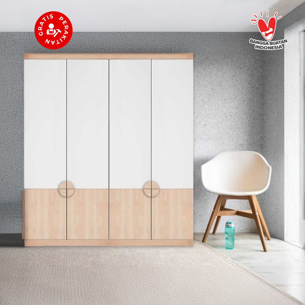 Harvest Furniture Lemari Pakaian Baju 4 Pintu Murah Modern Minimalis