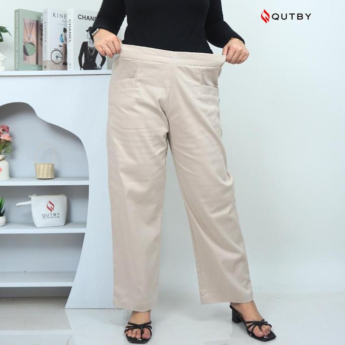 Qutby - Live Celana Korean Long Premium Bahan Katun Twill Premium Wanita Panjang Linen Kulot Dewasa Casual Hitam Cewek K