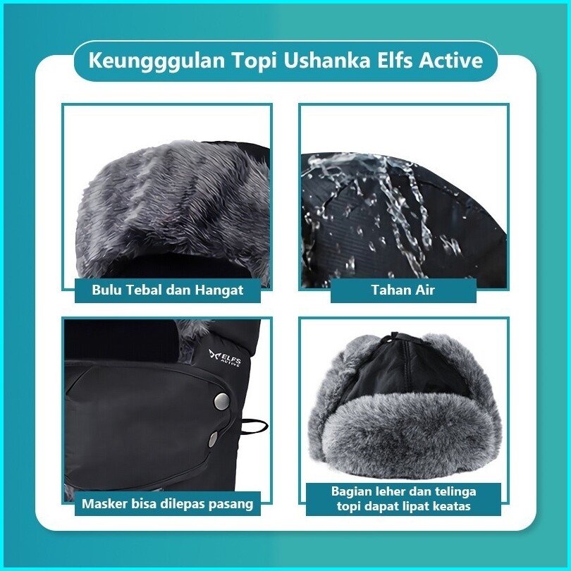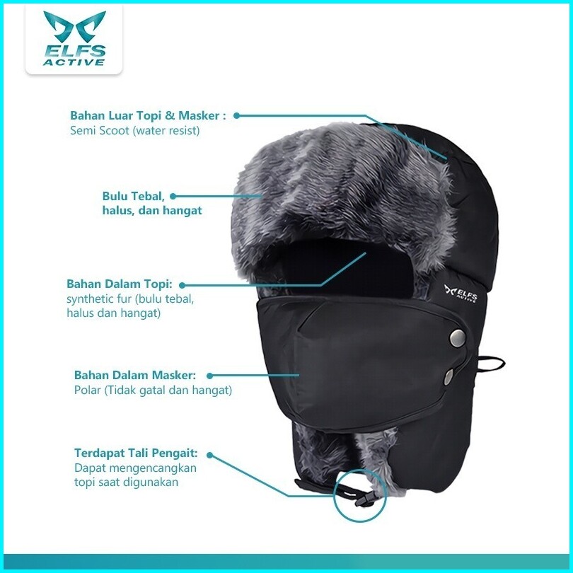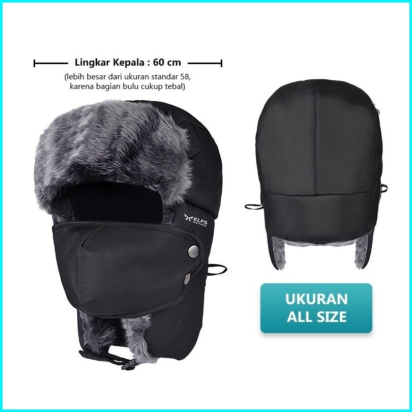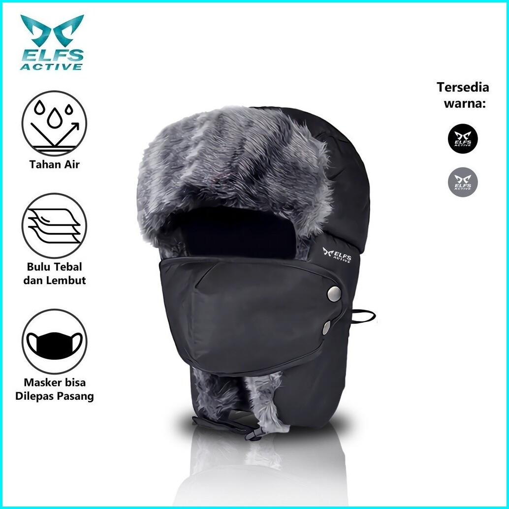 Elfs Active Topi Ushanka Russian Topi Bomber 3in1 Cap Dan Masker Water Resist Winter Bomber Hat Topi Musim Dingin To1