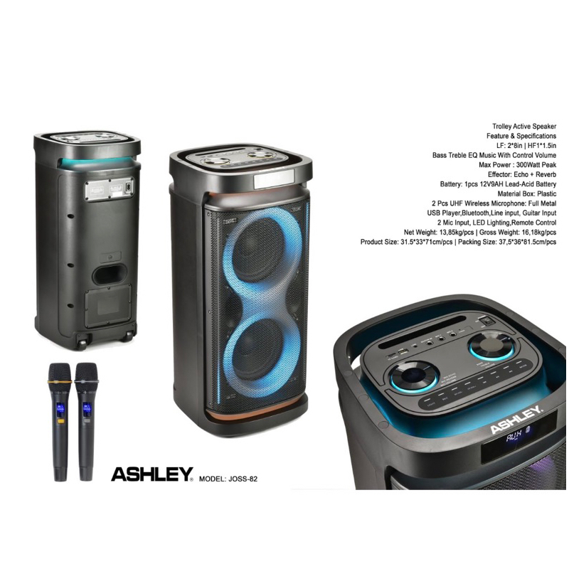 Speaker Portable Wireless Ashley Joss 82 Original 2x 8 inch Bluetooth