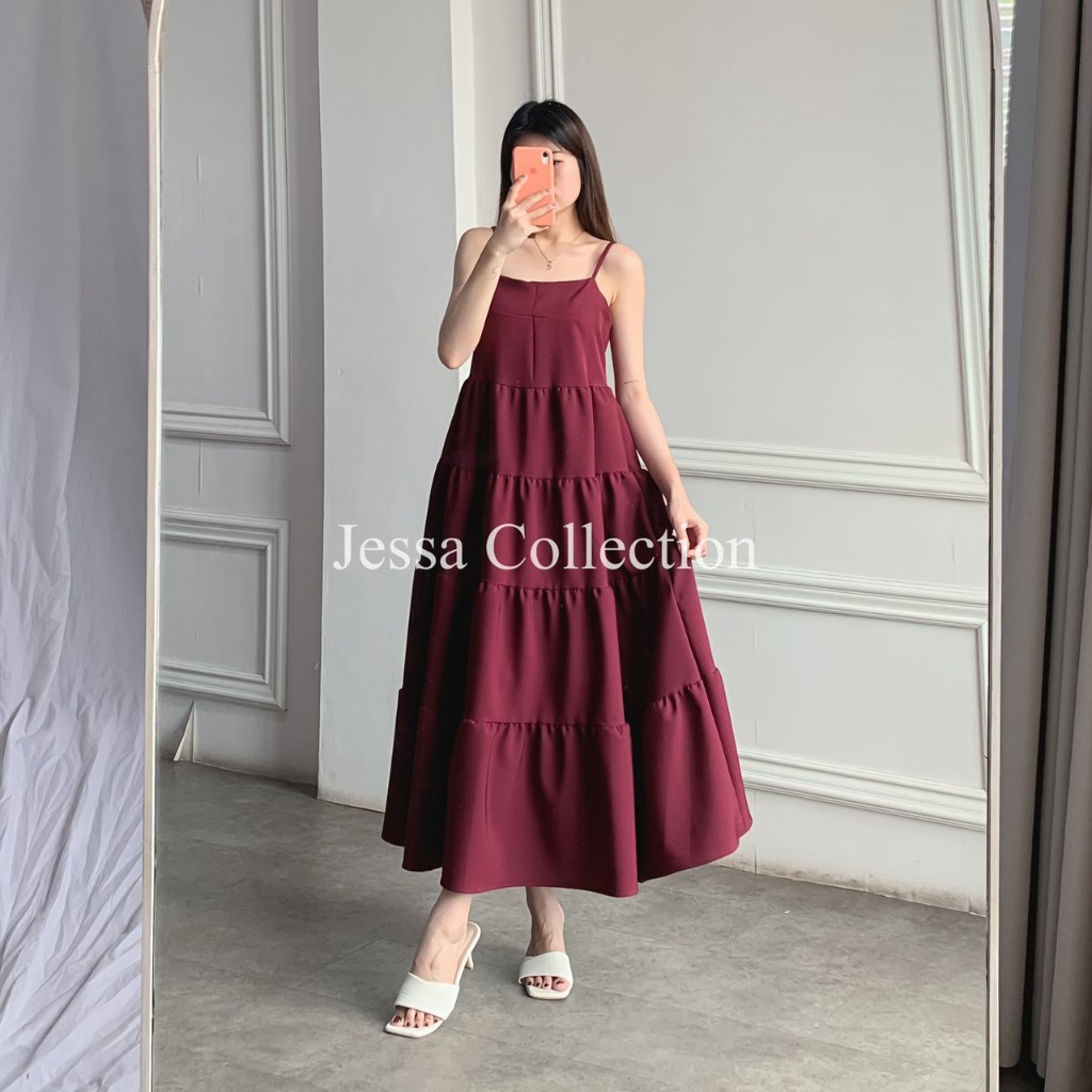 Marra Sleeveless Dress TH 708 ESMICA Gaun Midi Wanita Tanpa Lengan Model Simple Motif Polos