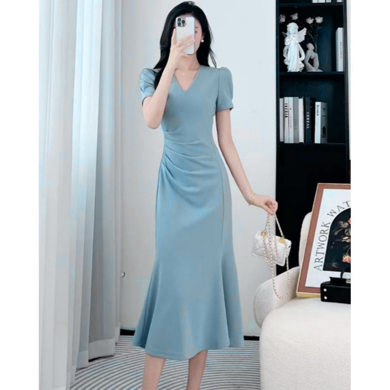 baju midi dress terbaru lebaran 2025 tunic dress korea putih polos gereja prewedding elegan wanita premium