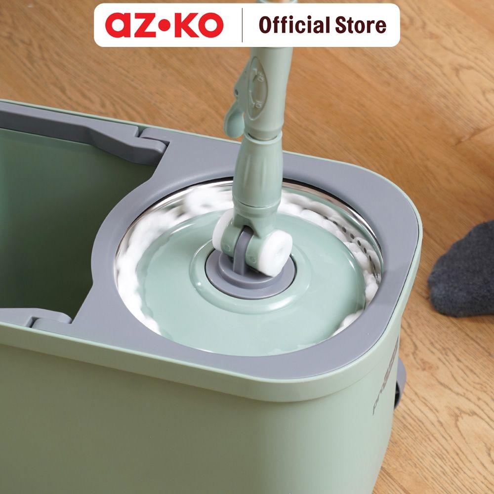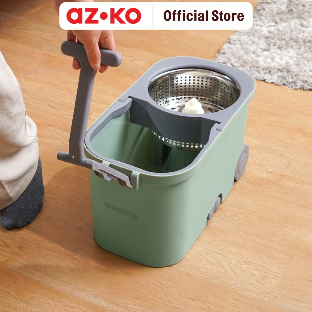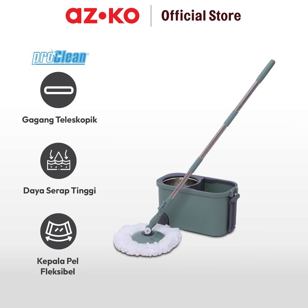 AZKO Proclean Set Alat Pel Putar Dengan Ember Peras & Roda - Hijau Mop Bucket Set Perabotan Rumah Alat Pembersih Lantai