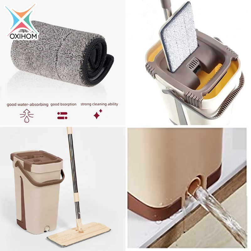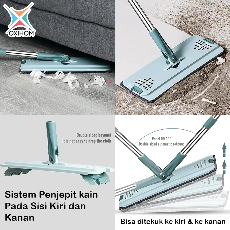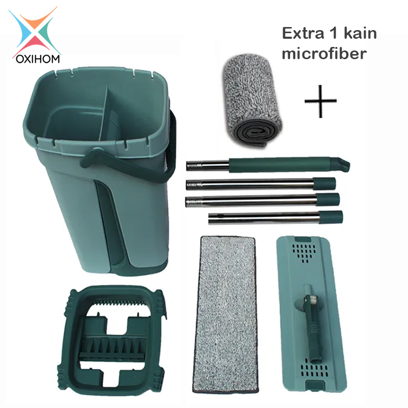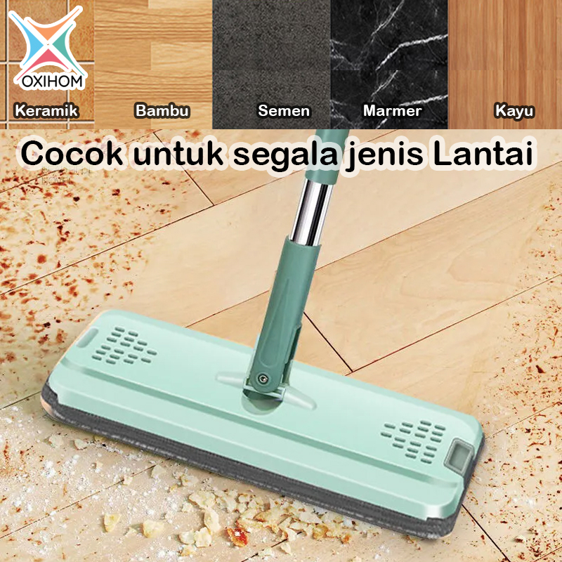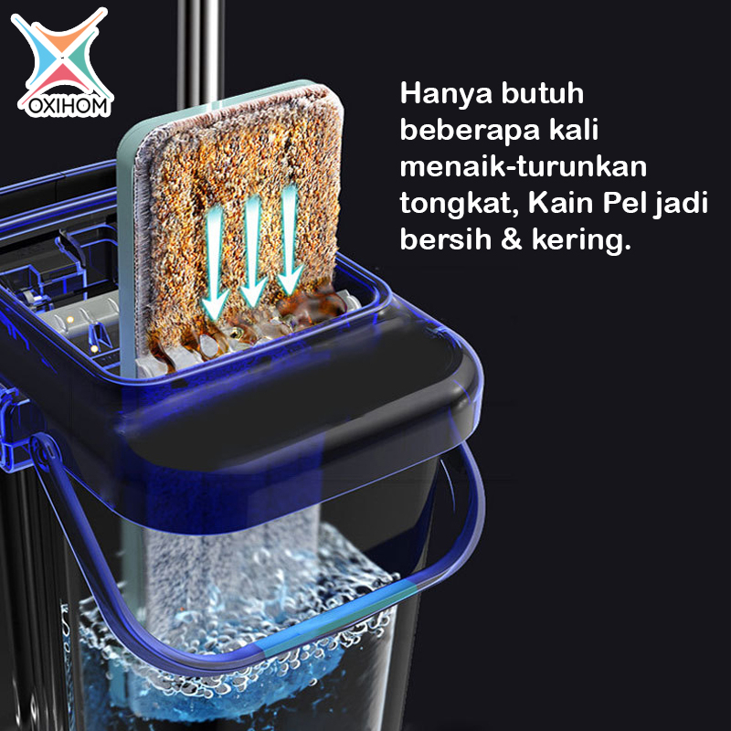 Oxihom Alat Pel Lantai dengan Pencuci dan Pengering Mop Gratis 2 Kain