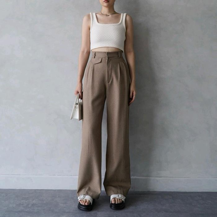 Oro Pants-Loose Pants Trouser Wanita - Celana Wanita Haigwaist Kekinian Anti Kusut - Cream Oro Pants, Standar