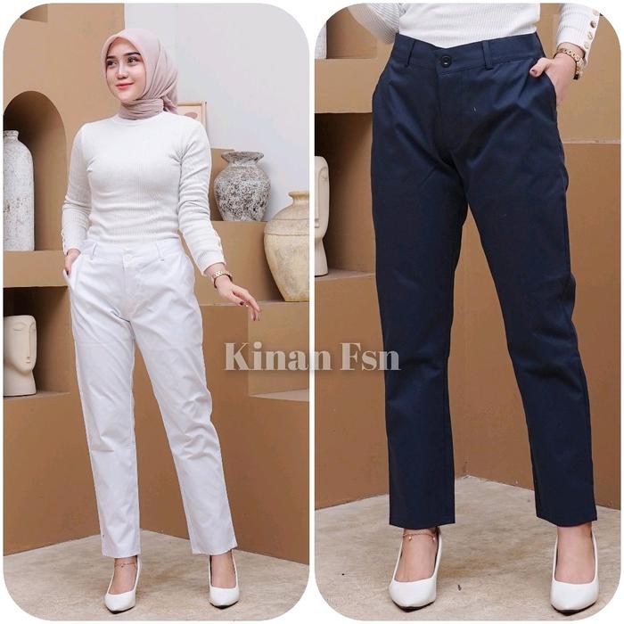 Celana Panjang Wanita Resleting Jumbo Kerja Karet Katun - Hitam, L