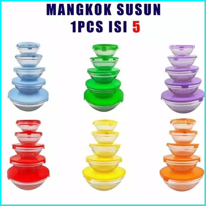 Bowl Set Mangkok Kaca Rq55 Mangkuk Glass Set Beranak Bowel 5 Susun