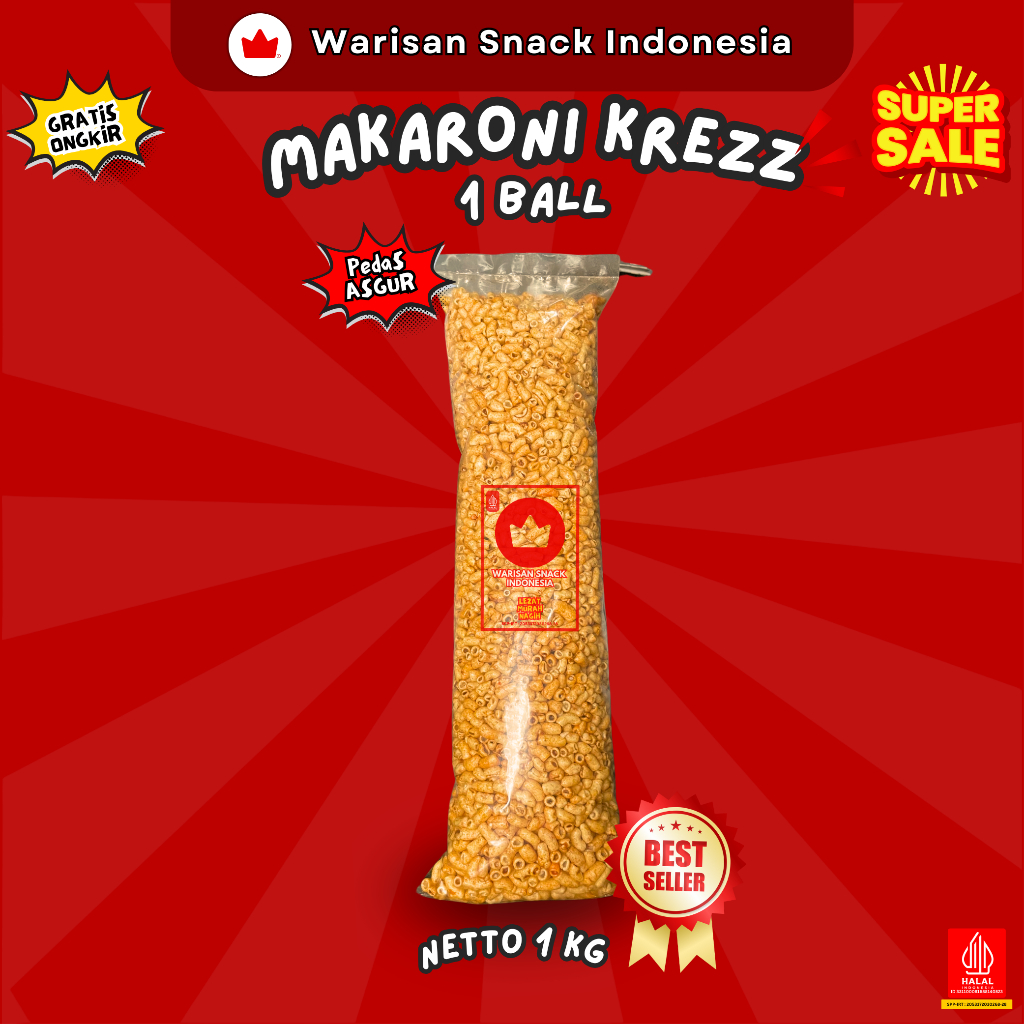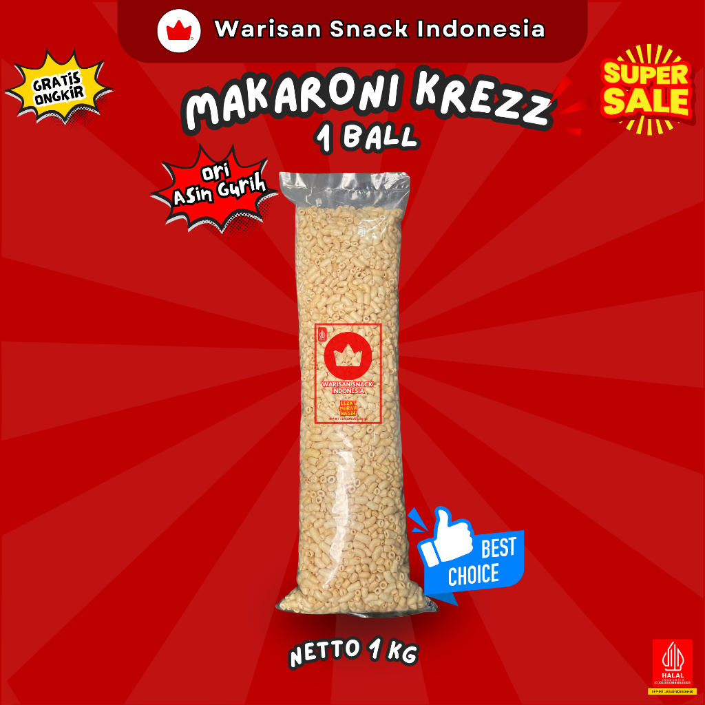 (1 Ball) Makaroni Bantat Warisan Snack Indonesia (1Kg) Makanan Ringan Krupuk Cemilan Murah Halal Pedas Daun Jeruk