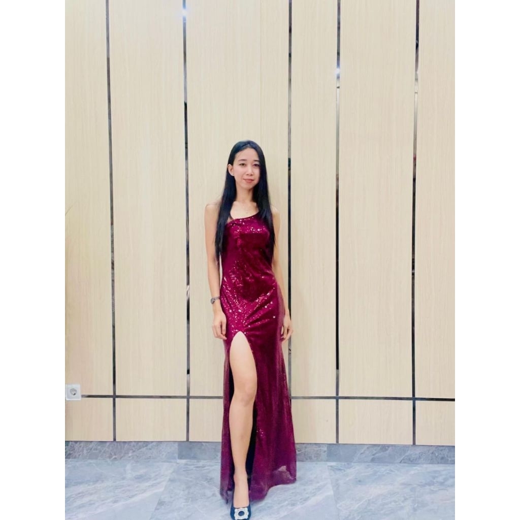 SUKMA - YOON Longdress Payet One SHoulder Gaun Maxi Sequins Pesta Wanita Mewah Bodycon 992