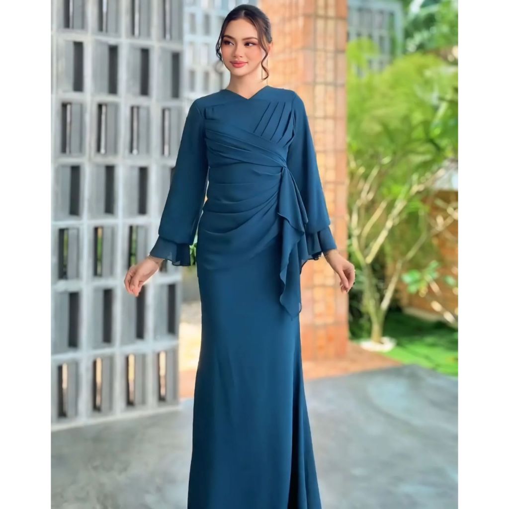 DRESS PESTA BRIDESMAID SLIMFIT WANITA KONDANGAN KEKINIAN GAMIS MEWAH CERUTY BABYDOLL FULL FURRING CLAIRE MAXY DRESS