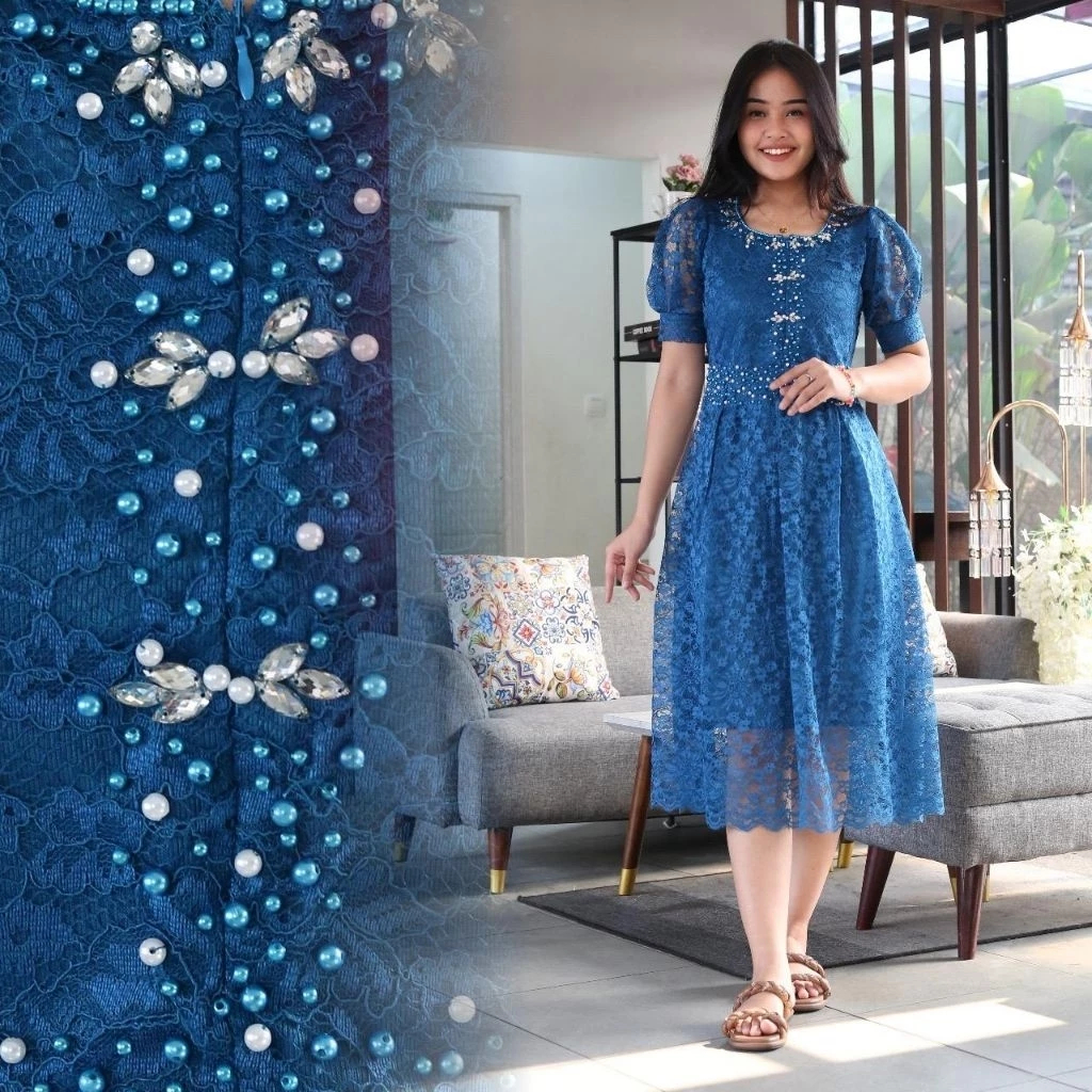 Dress Brokat Pesta Wanita Terbaru 2025 – Gaun Kondangan Elegan Gisella Emerald M–XXL