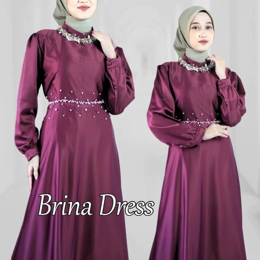 Brina Dress Maxi Gaun Pesta Kondangan Bridesmaid Wanita Satin Premium Termurah Gamis Trend Viral