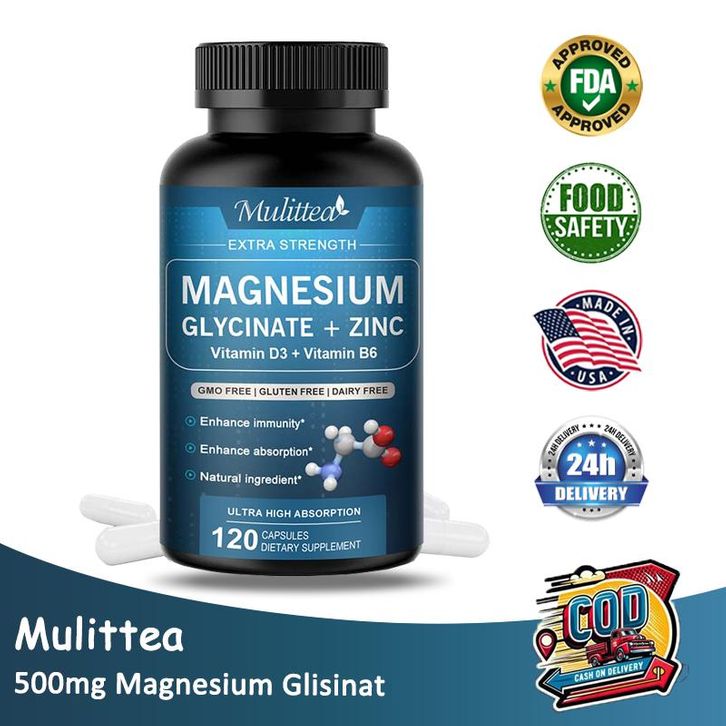 Mulittea Magnesium Glisinat 500mg Kapsul Mendukung Otot & Tulang Meredakan Saraf Tekanan Kesehatan