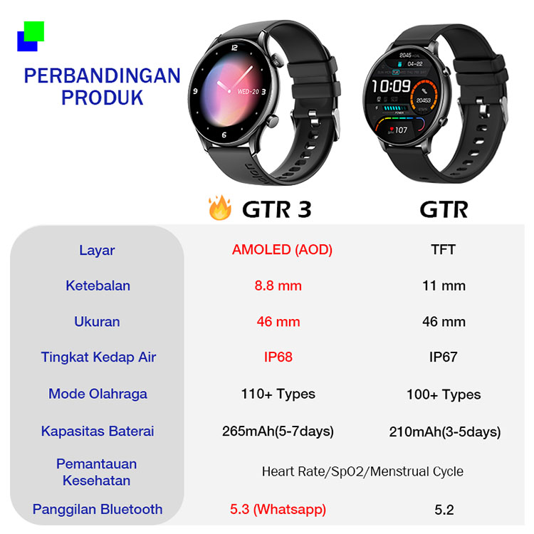Aolon Gtr 3 Strava koneksi Smartwatch 46mm Layar Amoled Resolusi Tinggi Aod Tebal 8,8mm Pemantauan Kesehatan Olahraga